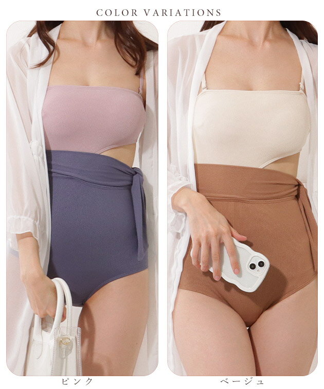 バイカラー サイド リボン アシンメトリー スイムウエア女性 レディース モノキニ 水着 夏 サマー 配色 シンプル 単色 無地 リブ 伸縮 大人 ミニマル 海 ビーチ プール リゾート レジャー 体型カバー シンプル 上品 カットアウト