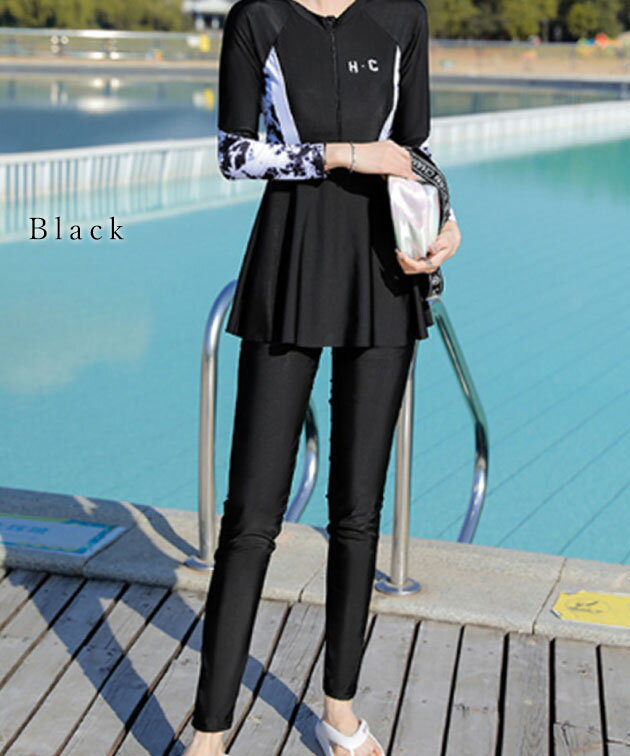 【2点セット】ハーフジップ ハイウエスト ワンピ風 長袖 ラッシュガード 女性 レディース スイムウエア 水着 ワンピース 夏 海 プール フィットネス SUP マリンレジャー 紫外線カット 日焼け防止 通気性 速乾 抗菌 伸縮 弾力 スカート レギンス