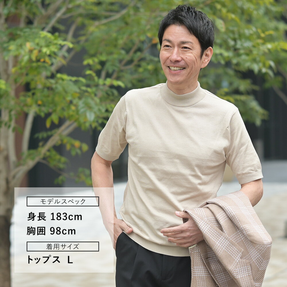 ジョンスメドレー JOHN SMEDLEY モックネックニット メンズ 半袖ニット ARBER シーアイランドコットン 30ゲージ ライトベージュ ハイゲージ MODERN FIT 国内正規品 でらでら 公式ブランド