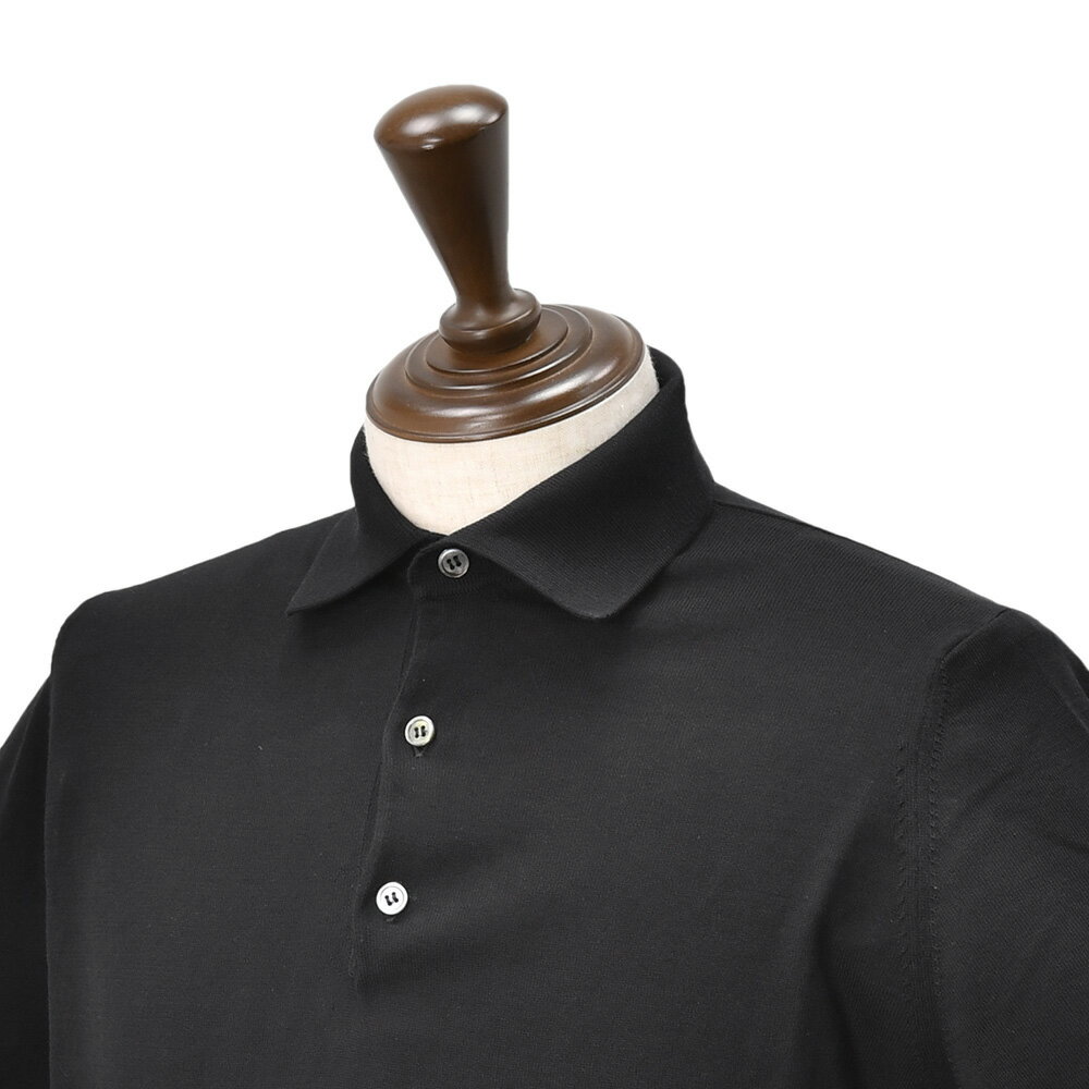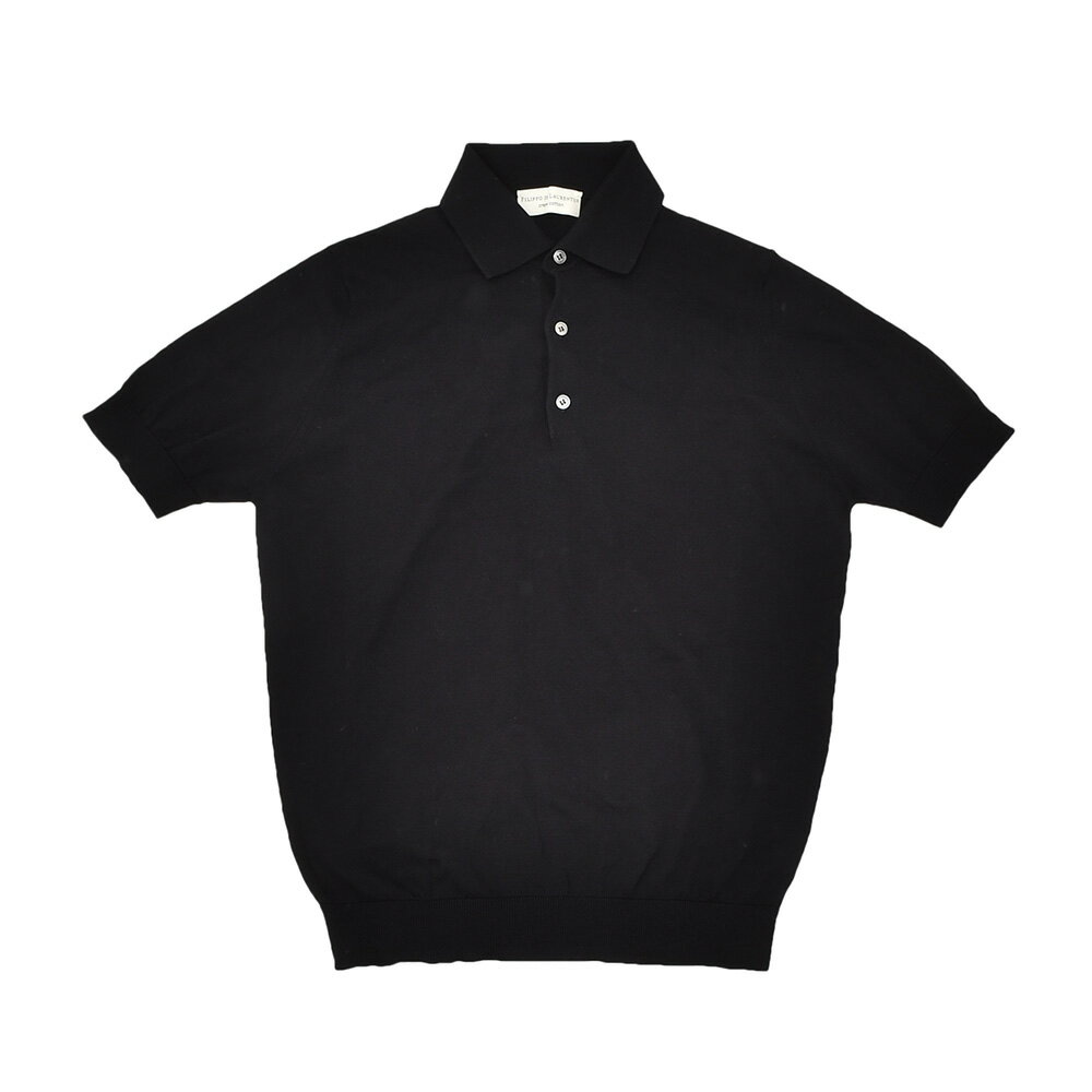 フィリッポ デ ローレンティス FILIPPO DE LAURENTIIS 半袖ニットポロシャツ メンズ 3つ釦 ショートスリーブ クレープコットン ブラック 黒 14ゲージ スリムフィット サマーニット 国内正規品 でらでら 公式ブランド