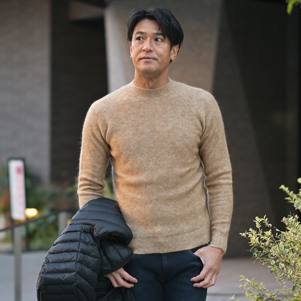 【スーパーSALE期間 50%off】フィリッポ デ ローレンティス FILIPPO DE LAURENTIIS クルーネックニット メンズ ミドルゲージ モヘアウール superkid mohoir キャメル 長袖 スリムフィット 国内正規品 でらでら 公式ブランド