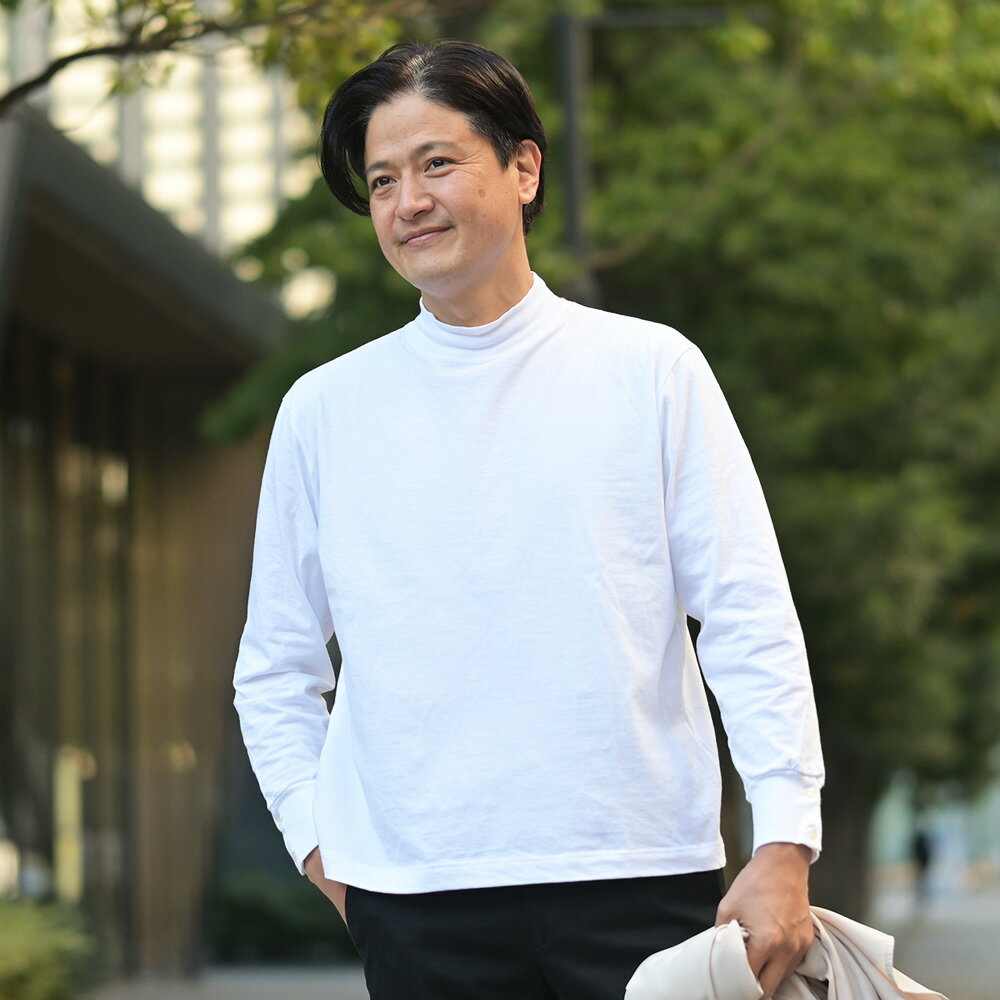 【月間優良ショップ記念 20%off】エラシオ ELACIO モックネックカットソー メンズ 長袖Tシャツ コットンスムースジャージー ホワイト 白 袖口釦仕様 無地デザイン レギュラーシルエット 国内正規品 でらでら 公式ブランド