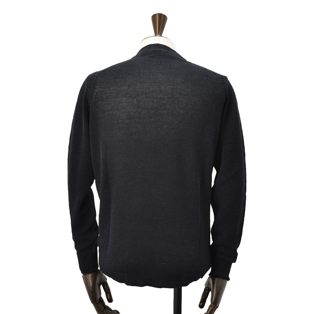 フィリッポ デ ローレンティス FILIPPO DE LAURENTIIS 長袖サマーニット メンズ クルーネックニット リネンコットン 14ゲージ ブラック 黒 リブ編み コンパクトフィット 国内正規品 でらでら 公式ブランド