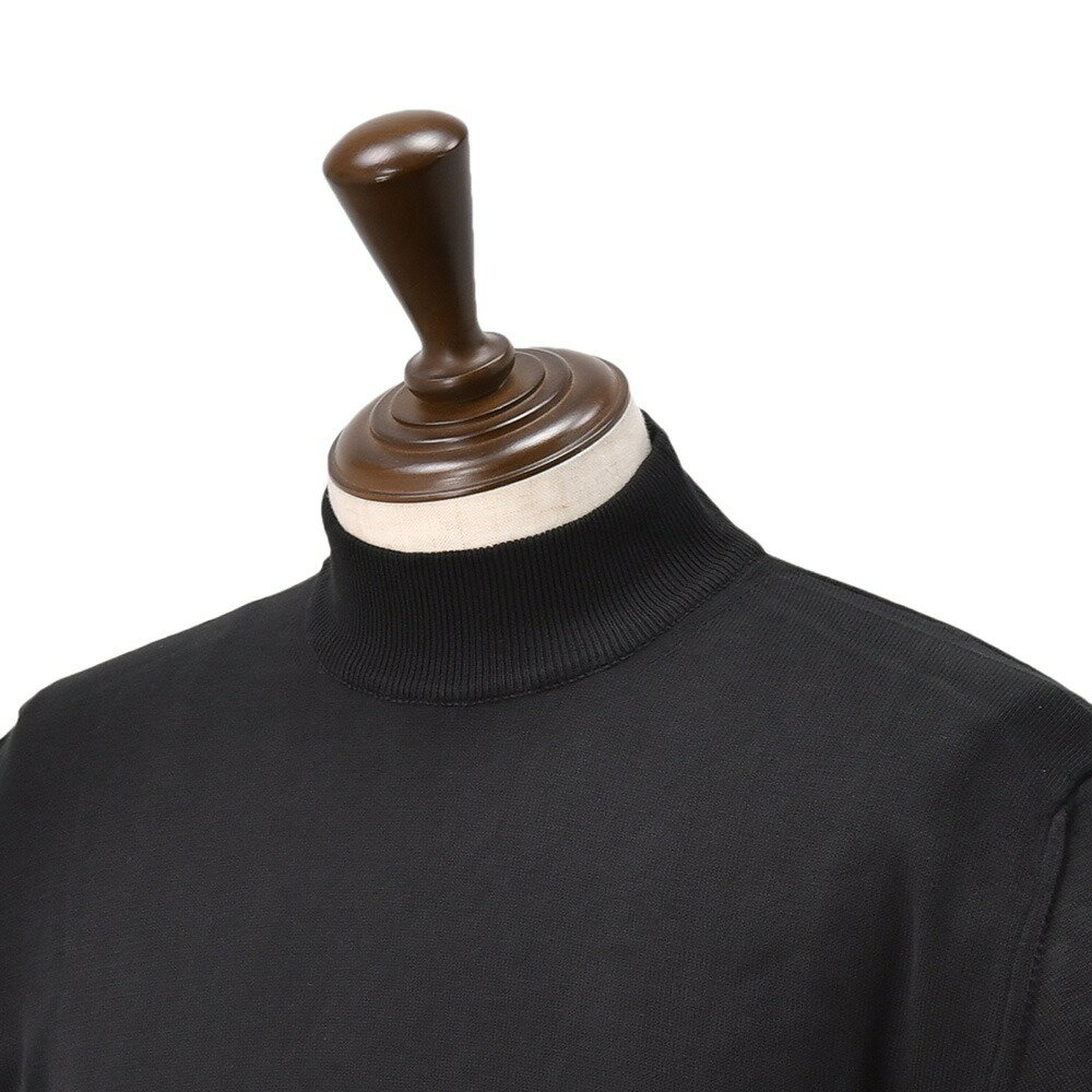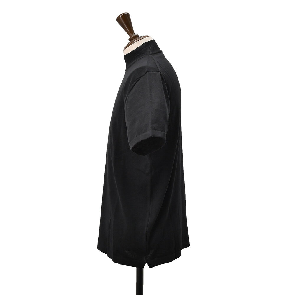 ノミアモ nomiamo 半袖ニットTシャツ メンズ モックネック仕様 ショートスリーブ 12ゲージコットン ブラック 黒 ハイゲージ レギュラーシルエット 裾スリット イタリア製 国内正規品 でらでら公式 ブランド