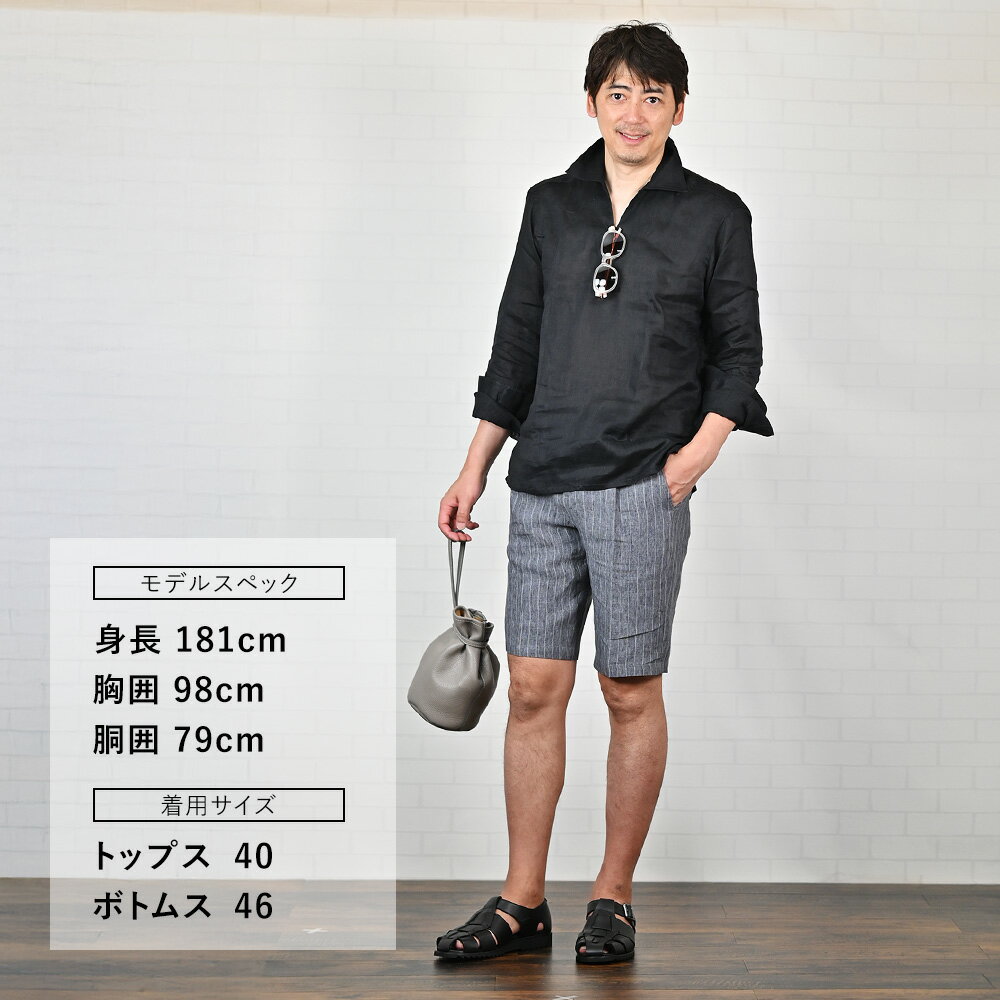 ブリリア BRIGLIA1949 イージーショーツ メンズ ハーフパンツ OLBIAS Active Linen アクティブリネン生地 グレー×ライトグレー ストライプ柄 バックシャーリング仕様 ドローコード調節 国内正規品 でらでら公式 ブランド