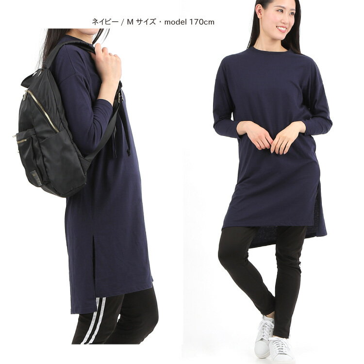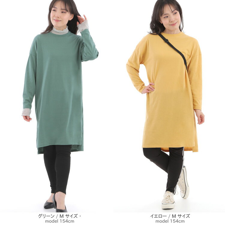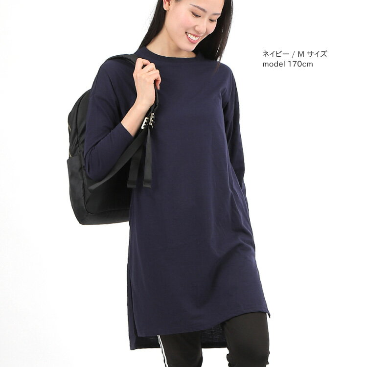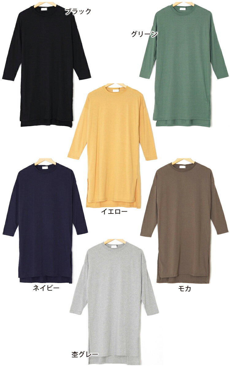 1000円ぽっきり!【1,990円→1,000円】長袖Tシャツ レディース ロング サイドスリットtシャツ チュニック Tシャツ ロンT トップス 綿混 カジュアル イレヘム M L カラー 無地 ブラック グリーン イエロー ネイビー モカ グレー 1枚までメール便1通発送 送料無料