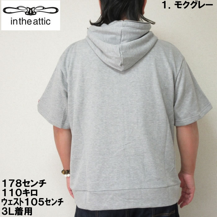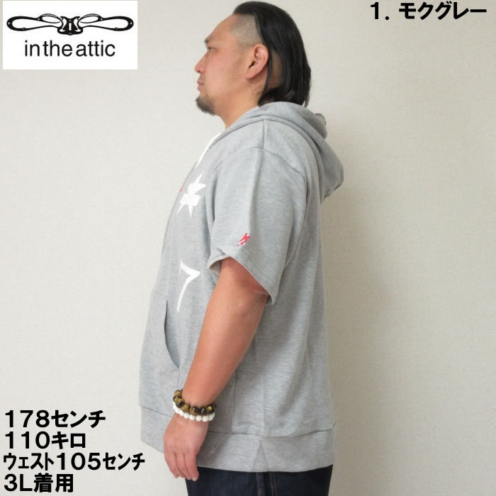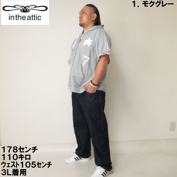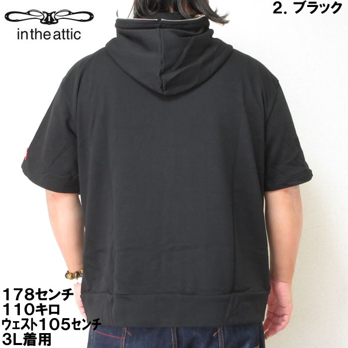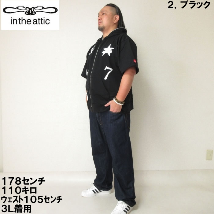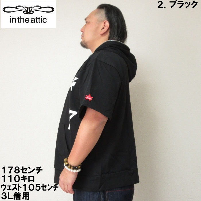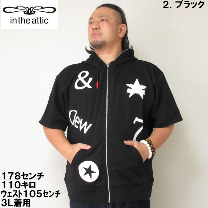 大きいサイズ メンズ in the attic 裏毛 ワッペン 半袖 フルジップ パーカー(メーカー取寄)インジアティック 2L 3L 4L 5L 6L デビルーズ 大きい サイズ ビッグサイズ キングサイズ ブランド オシャレ メンズファッション パーカ トップス ルームウェア 部屋着