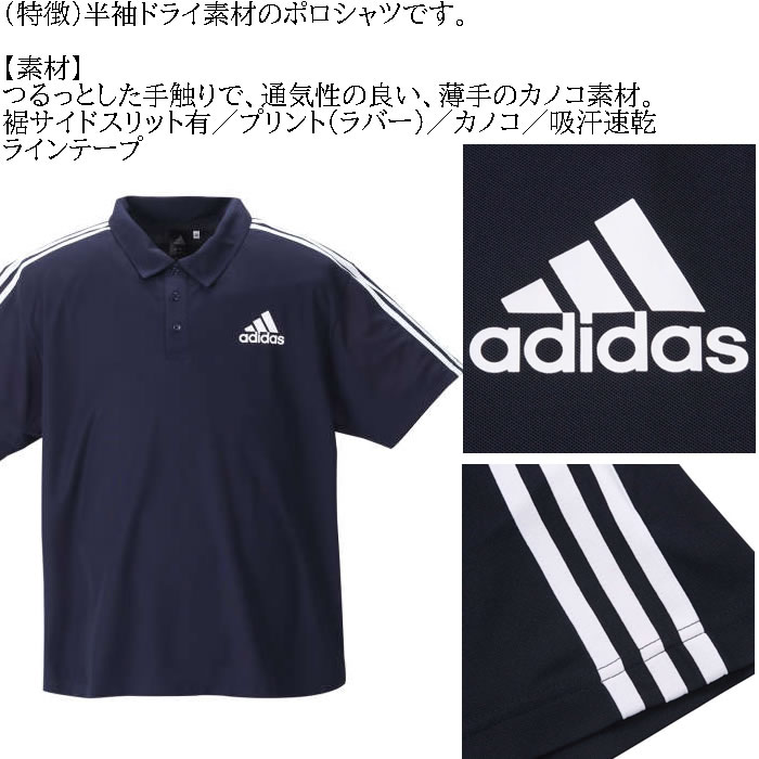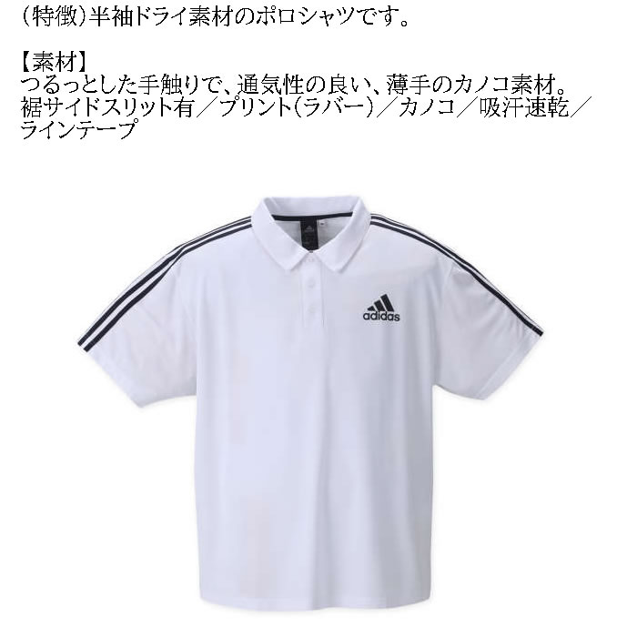 大きいサイズ メンズ adidas ドライ 半袖 ポロシャツ(メーカー取寄)アディダス 2L 3L 4L 5L 6L 7L 大きい サイズ ビッグサイズ キングサイズ ブランド おしゃれ ポロシャツ ポロ 夏 春 トップス 春服 夏服 制服 ブランド