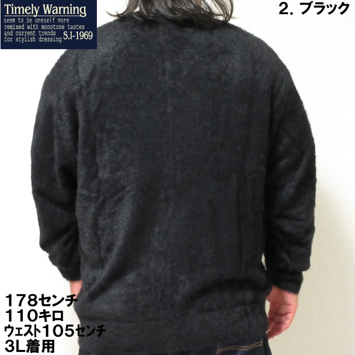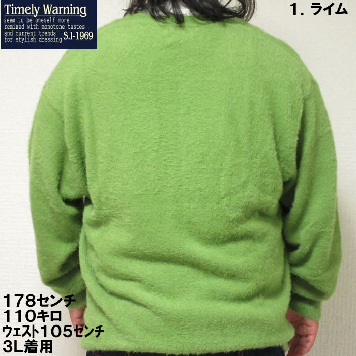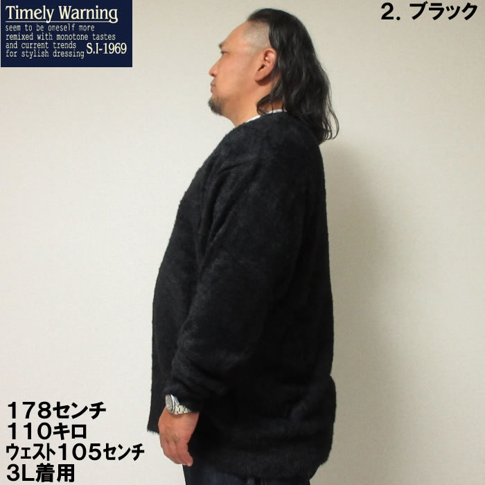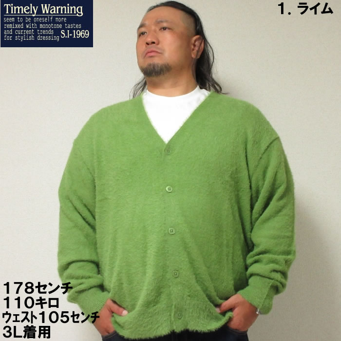 大きいサイズ メンズ Timely Warning シャギー Vネック カーディガン(メーカー取寄)タイムリーワーニング 3L 4L 5L 6L 大きい サイズビッグサイズ キングサイズ おしゃれ デビルーズ ブランド ニット オフィス スクール 学校 内勤 カーデ ニットカーディガン