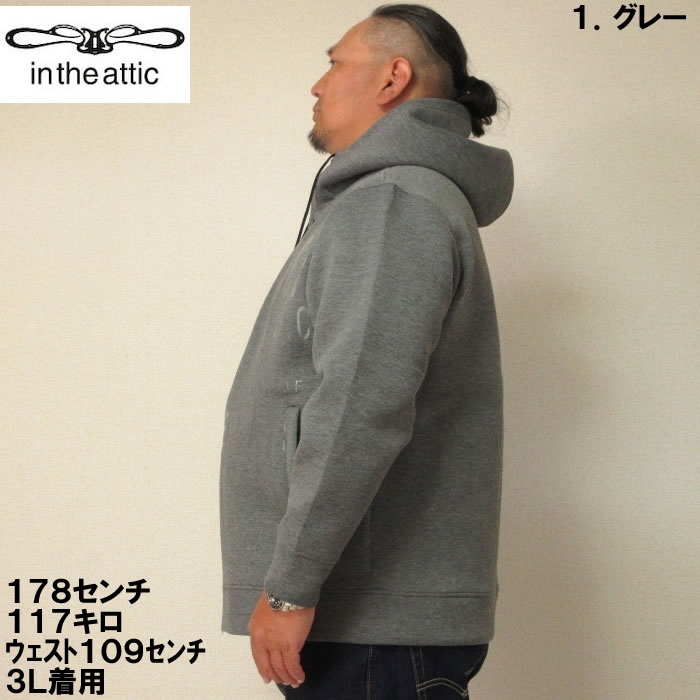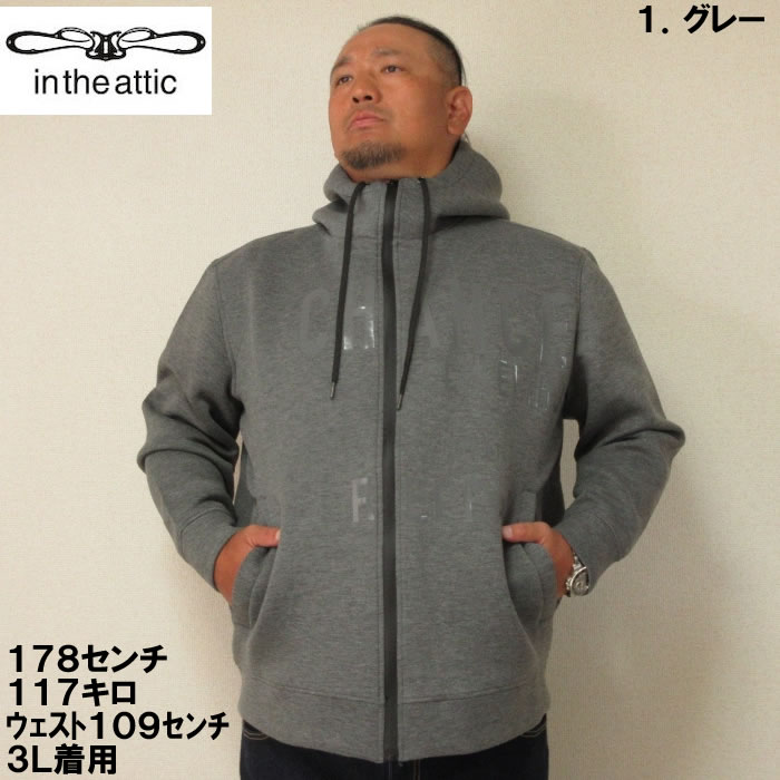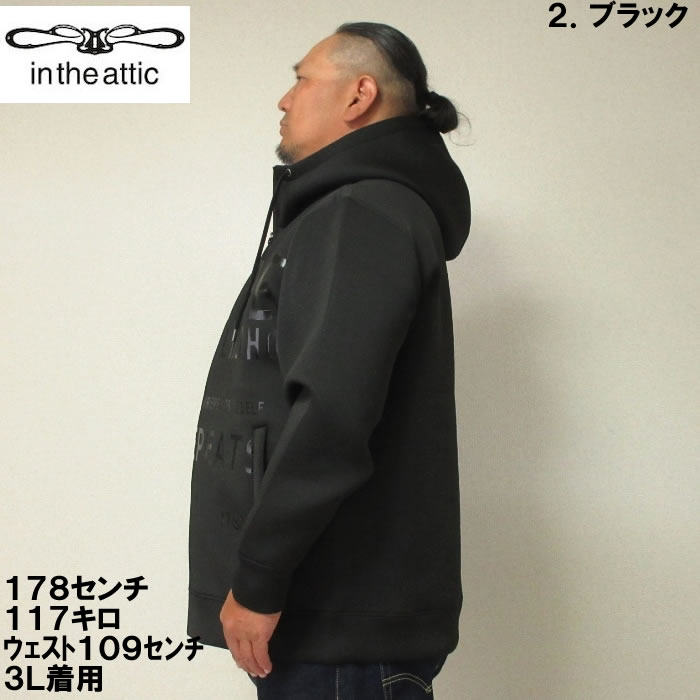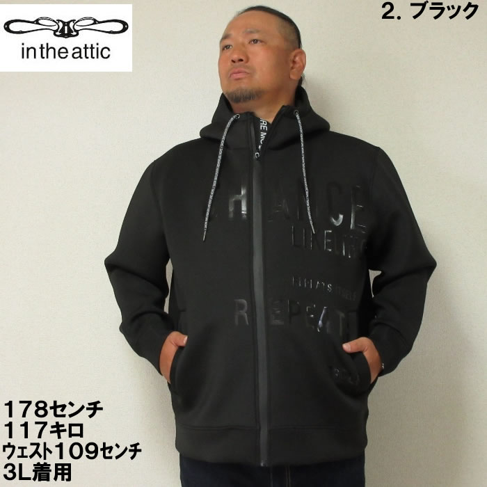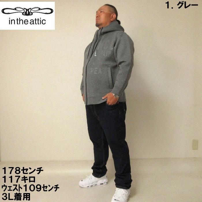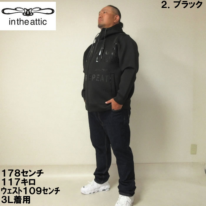 大きいサイズ メンズ in the attic クッション ダンボー ル光沢ロゴ フルジップ パーカー(メーカー取寄)インジアティック 3L 4L 5L 6L デビルーズ 大きい サイズ ビッグサイズ キングサイズ ブランド オシャレ メンズファッション パーカ トップス ルームウェア 部屋着