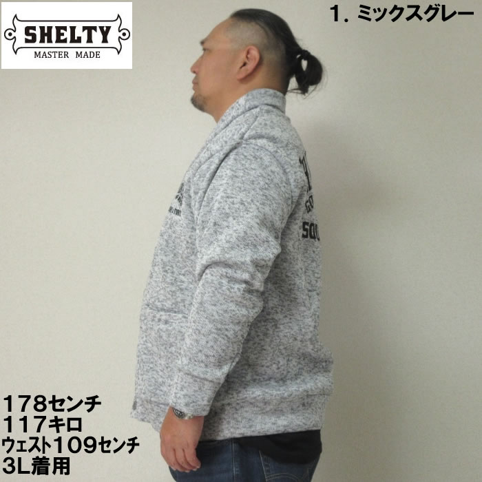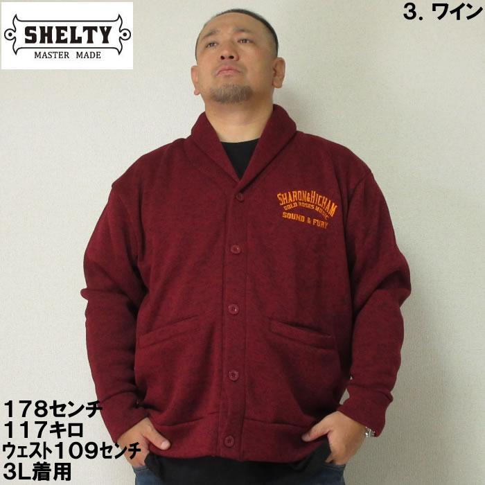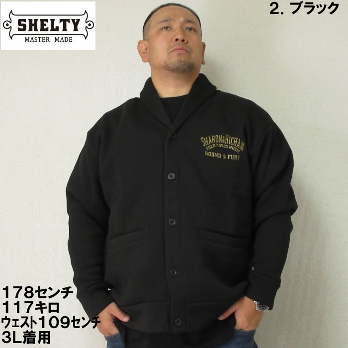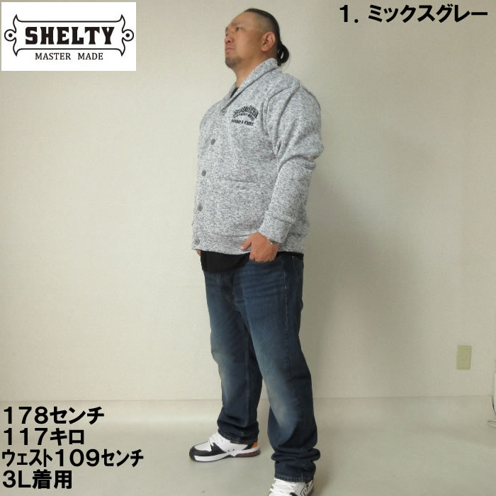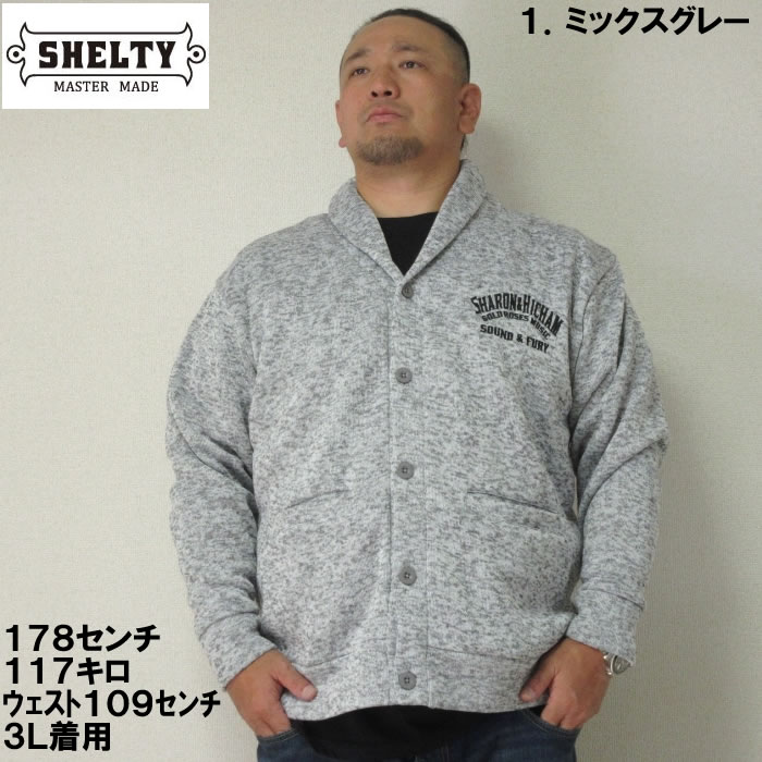 大きいサイズ メンズ SHELTY ニット フリース ルード系 刺繍 ショール カーディガン(メーカー取寄)シェルティ 3L 4L 5L 6L 大きい サイズビッグサイズ キングサイズ おしゃれ デビルーズ ブランド ニット オフィス スクール 学校 内勤 カーデ ニットカーディガン