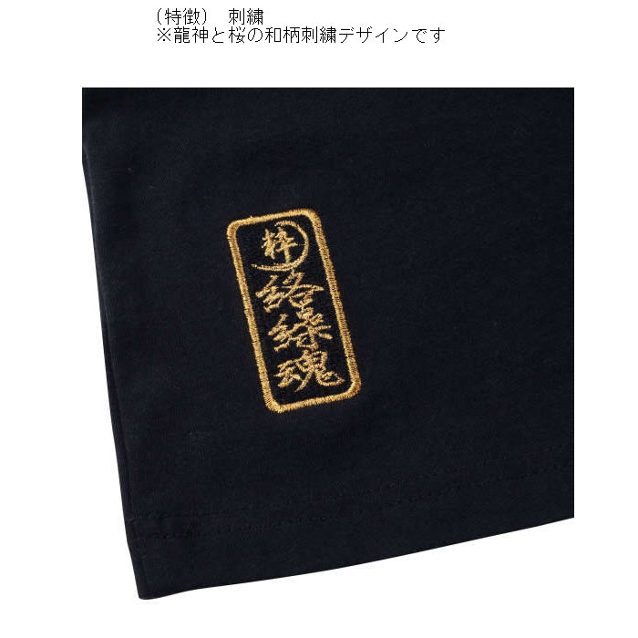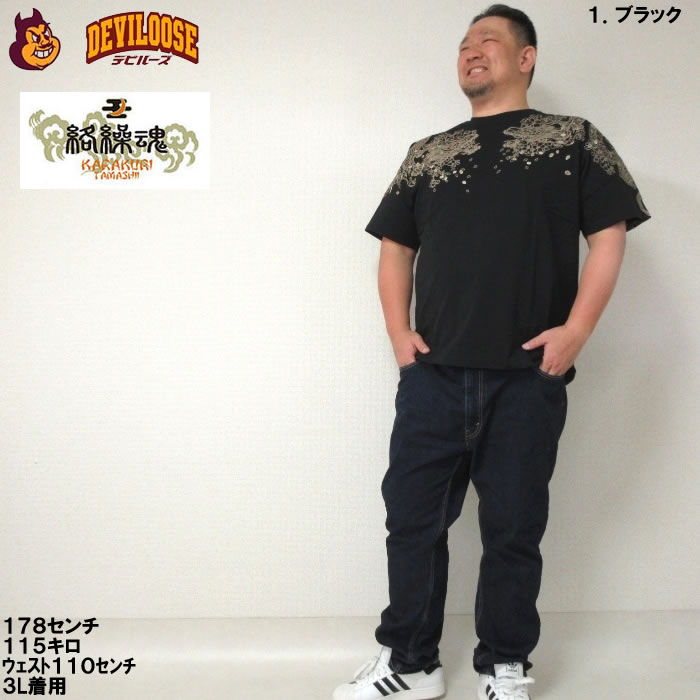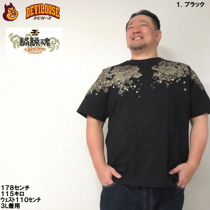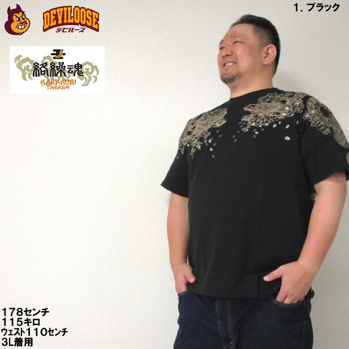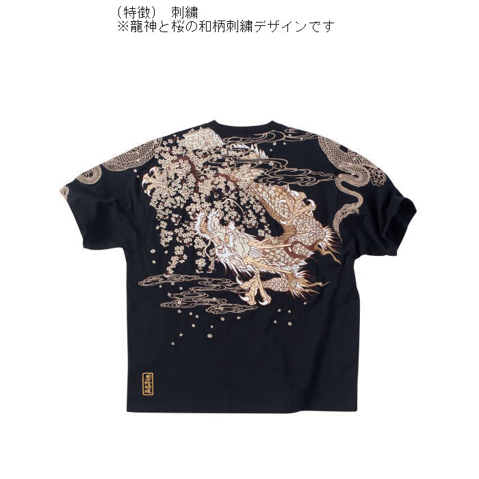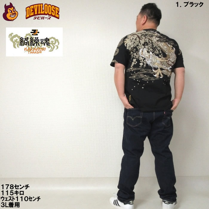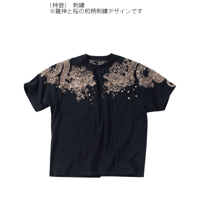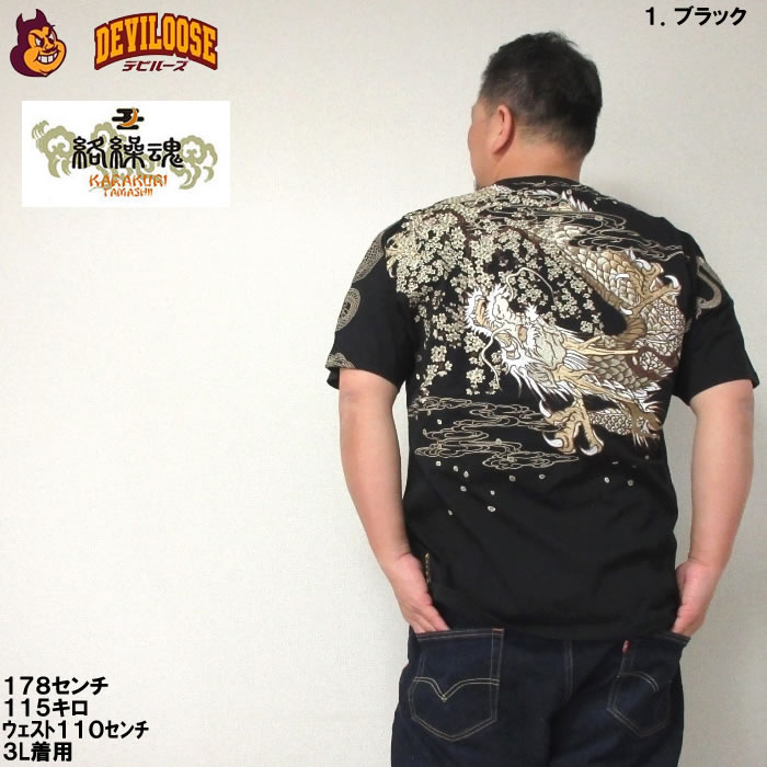 大きいサイズ メンズ 絡繰魂 龍神桜 刺繍 半袖 Tシャツ(メーカー取寄)3L 4L 5L 6L 和柄 コットン からくり 大きい サイズ キングサイズ ビッグサイズ デビルーズ インナー おしゃれ ブランド カットソー メンズファッション 春 夏 服