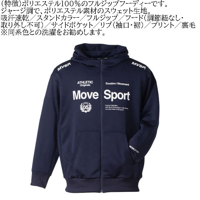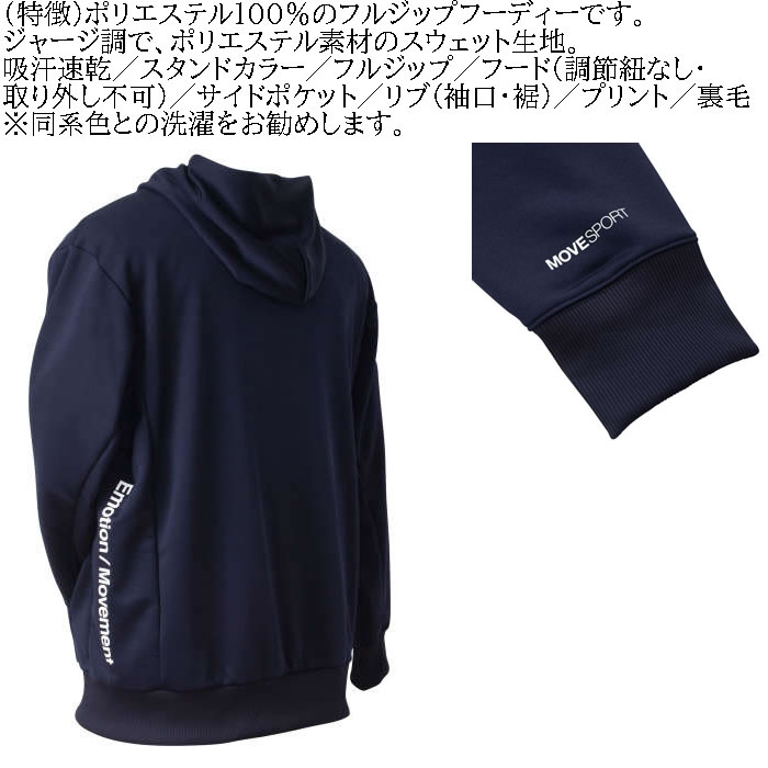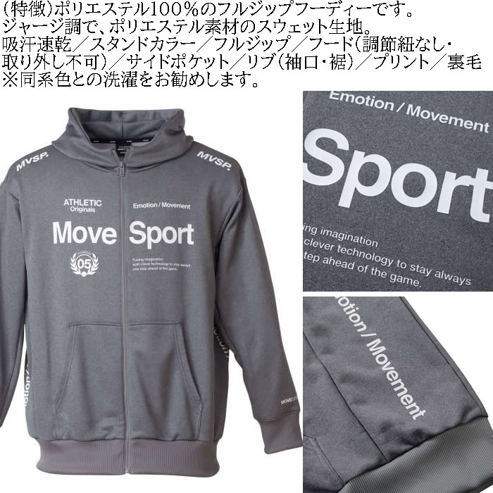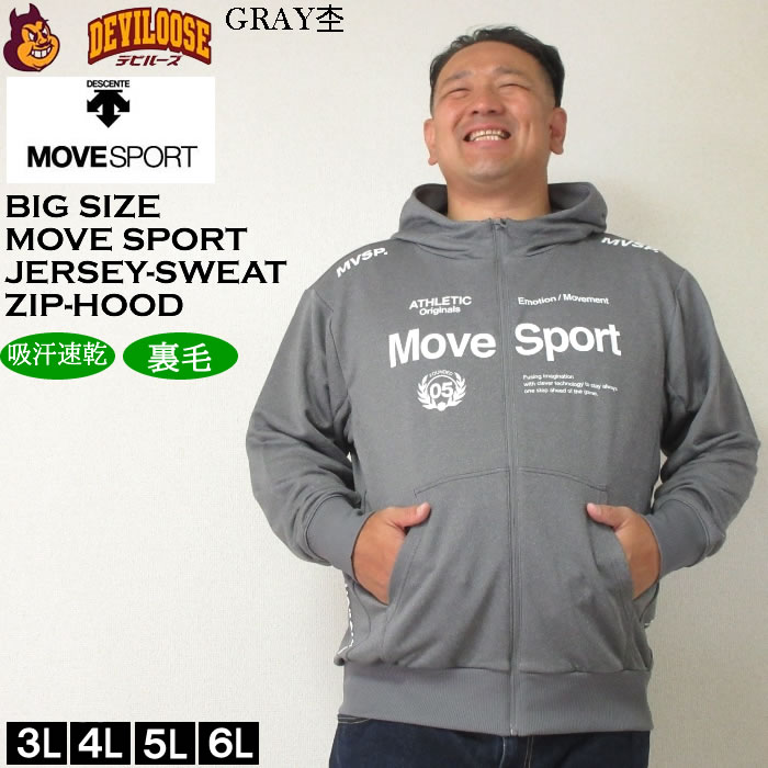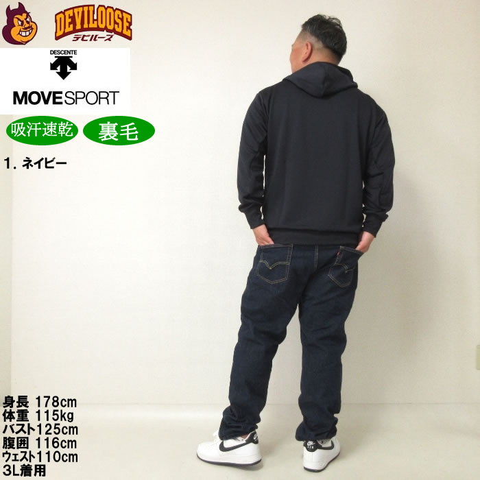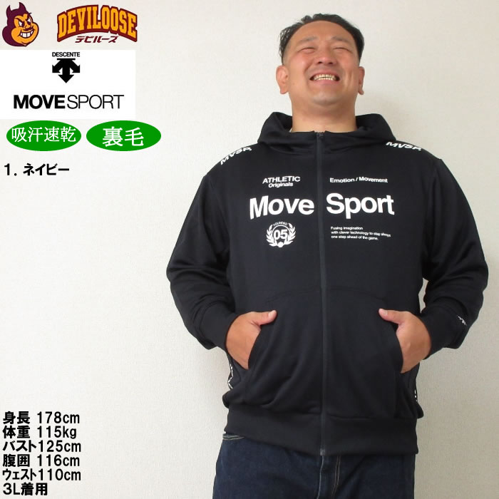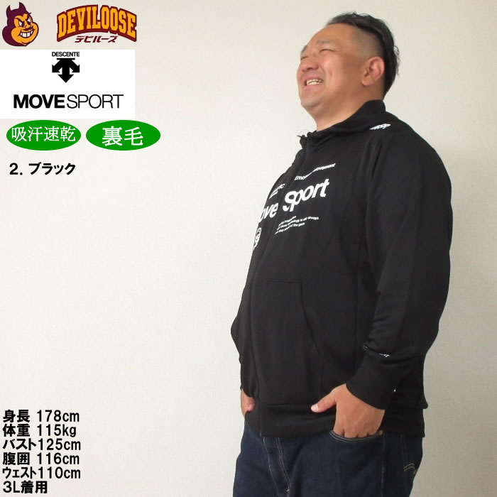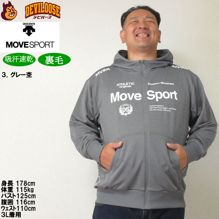 大きいサイズ メンズ MOVESPORT ライトスムーススウェットロゴジップフーディー(メーカー取寄)(上下別売)ムーブスポーツ デサント 3L 4L 5L 6L パーカー 裏毛 吸汗速乾 大きい サイズ ビッグサイズ キングサイズ ブランド デビルーズ ジャージ スポーツウェア