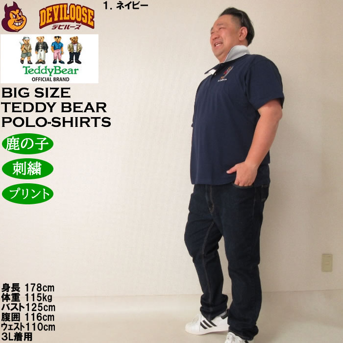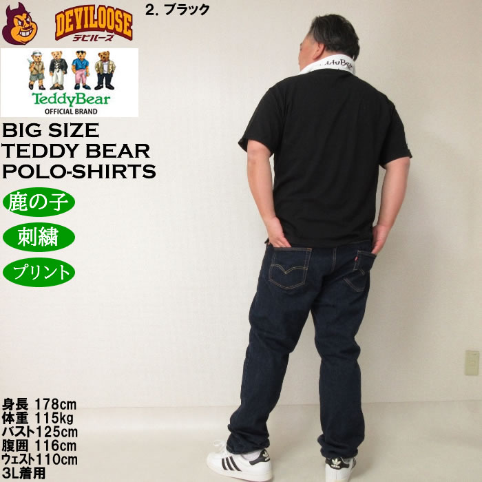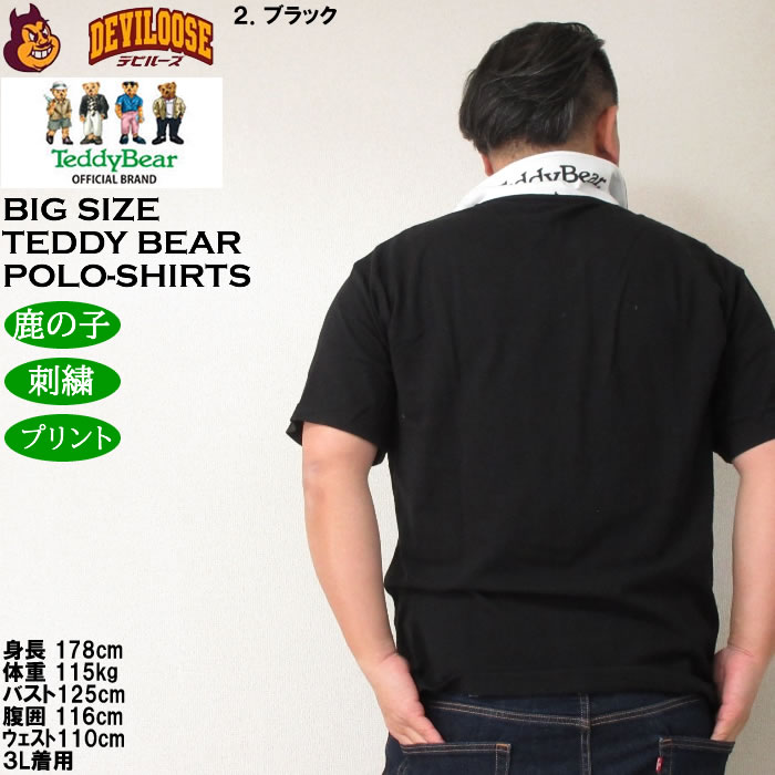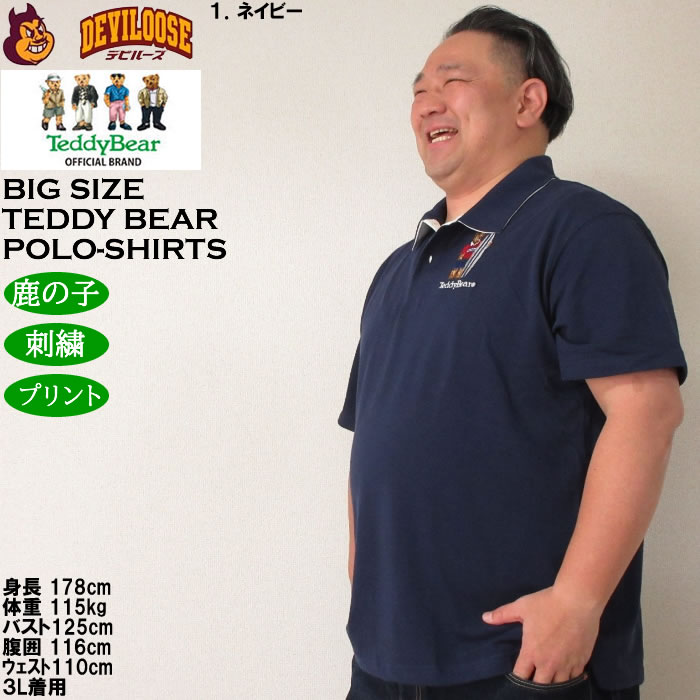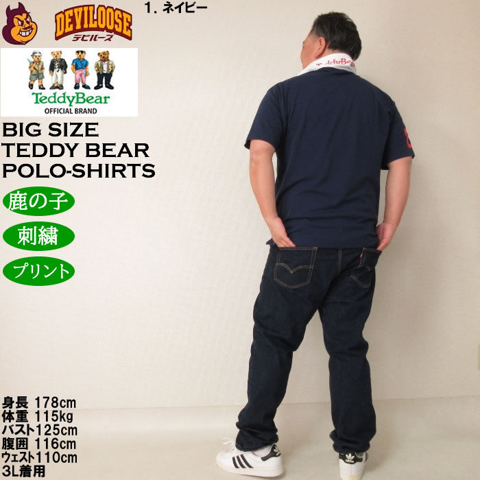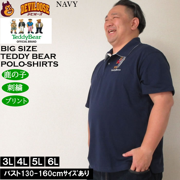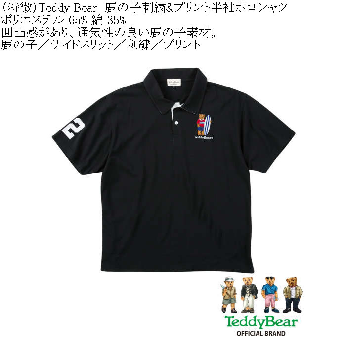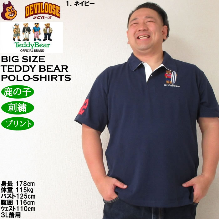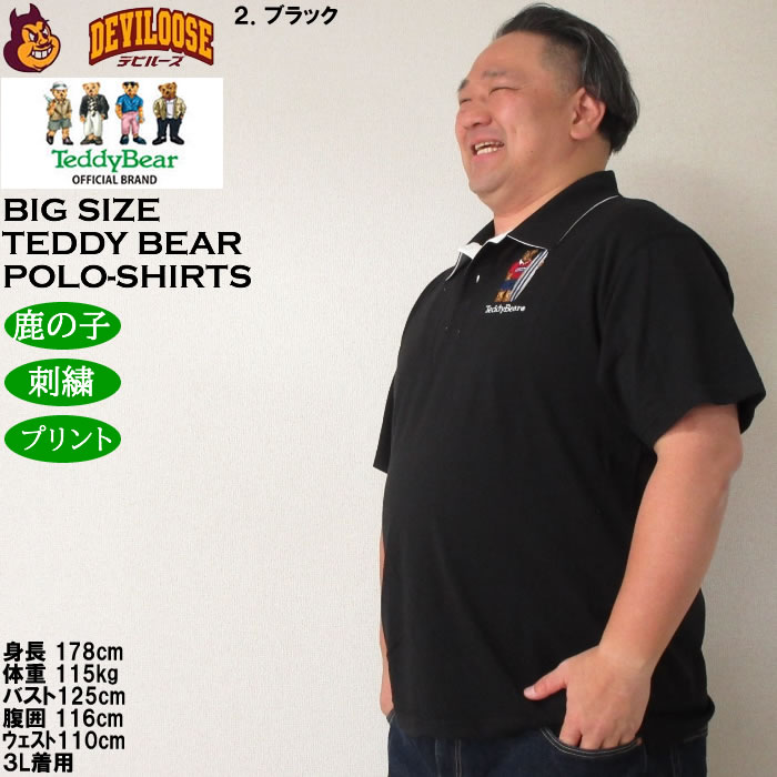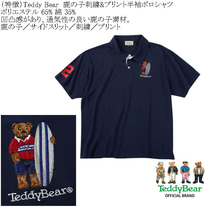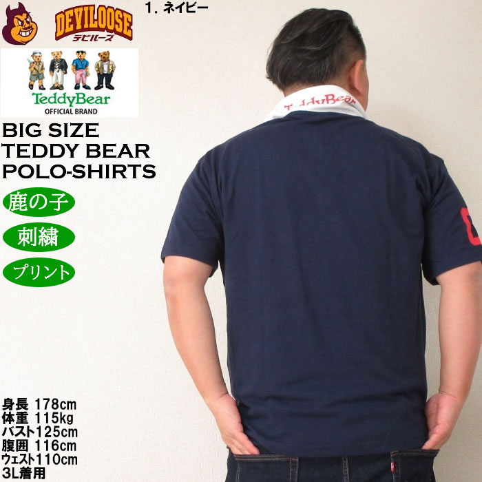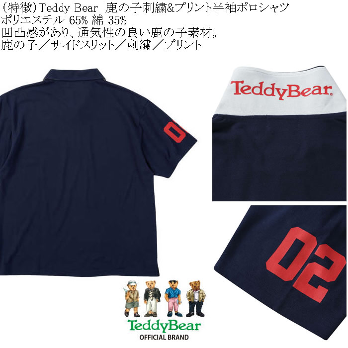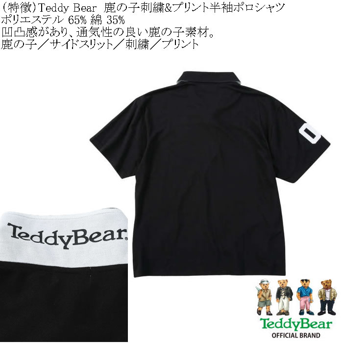大きいサイズ メンズ Teddy Bear 鹿の子刺繍&プリント 半袖ポロシャツ(メーカー取寄)テディベア 3L 4L 5L 6L 大きい サイズ ビッグサイズ キングサイズ ブランド おしゃれ ポロシャツ ポロ 夏 春 トップス 春服 夏服 制服 ブランド