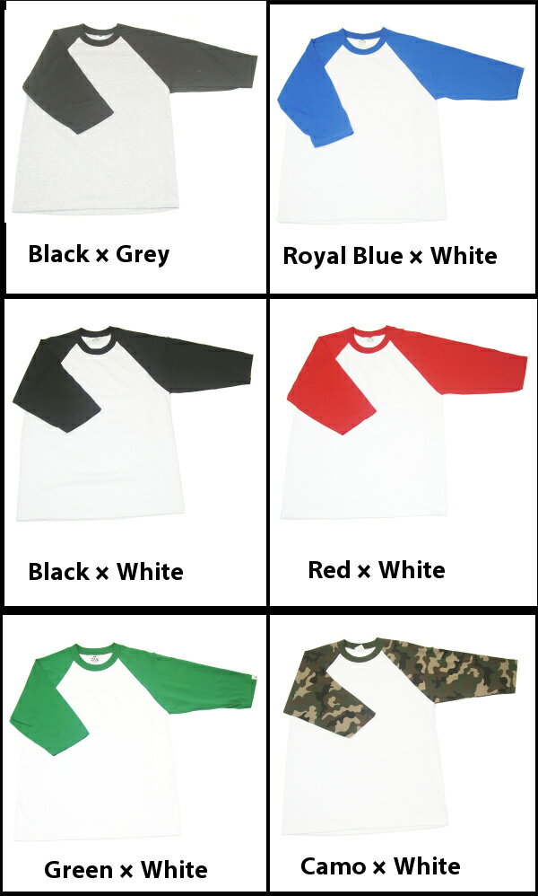 【135】PRO CLUB (プロクラブ) 3/4 ラグラン ベースボールTシャツ【全10色】ヒップホップ衣装 ダンス 【S〜2XL】[3XL〜5XLもございます]メンズ 7分袖 PROCLUB(ポロクラブ) 無地/プレーン 7分袖 ベースボール大きいサイズインナー S M