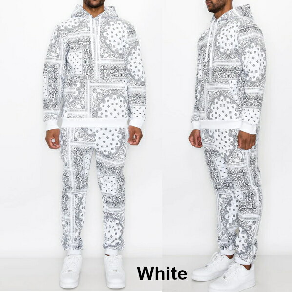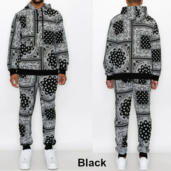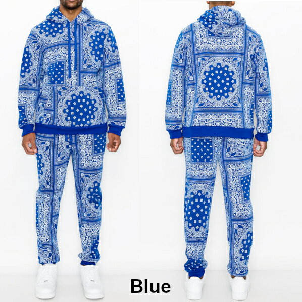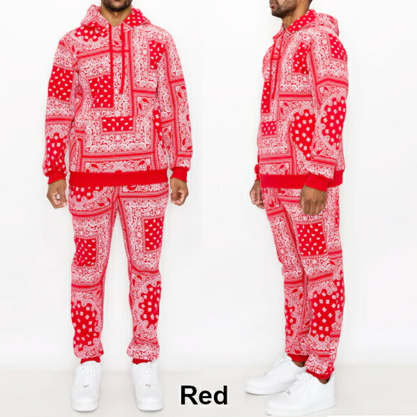 VICTORIOUS((ヴィクトリアス)) BANDANA FLEECE SET【S〜2XL】ペイスリースエット セットアップ スエット上下 セット アップ バンダナ フリーズパーカー ヒップホップ上下 ストリートLA メンズセット 大きいサイズ ローライダー M LL 2L 3L 4L