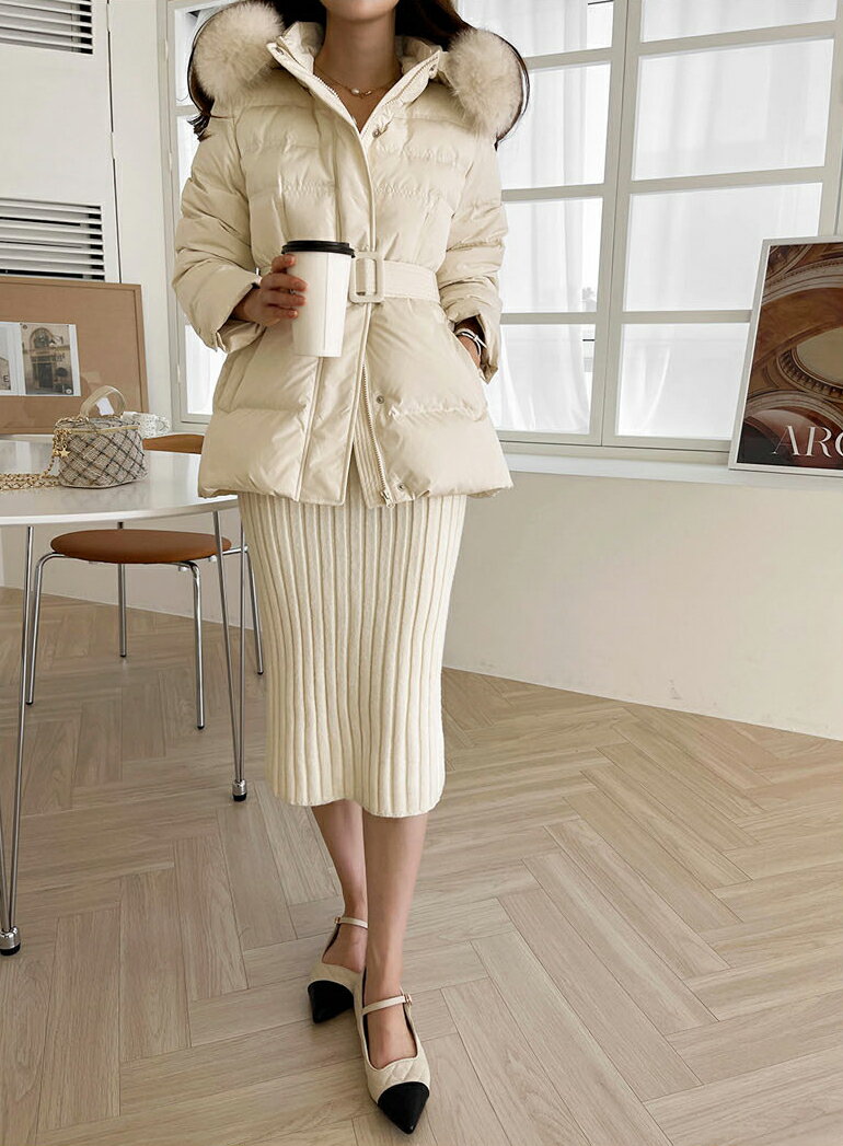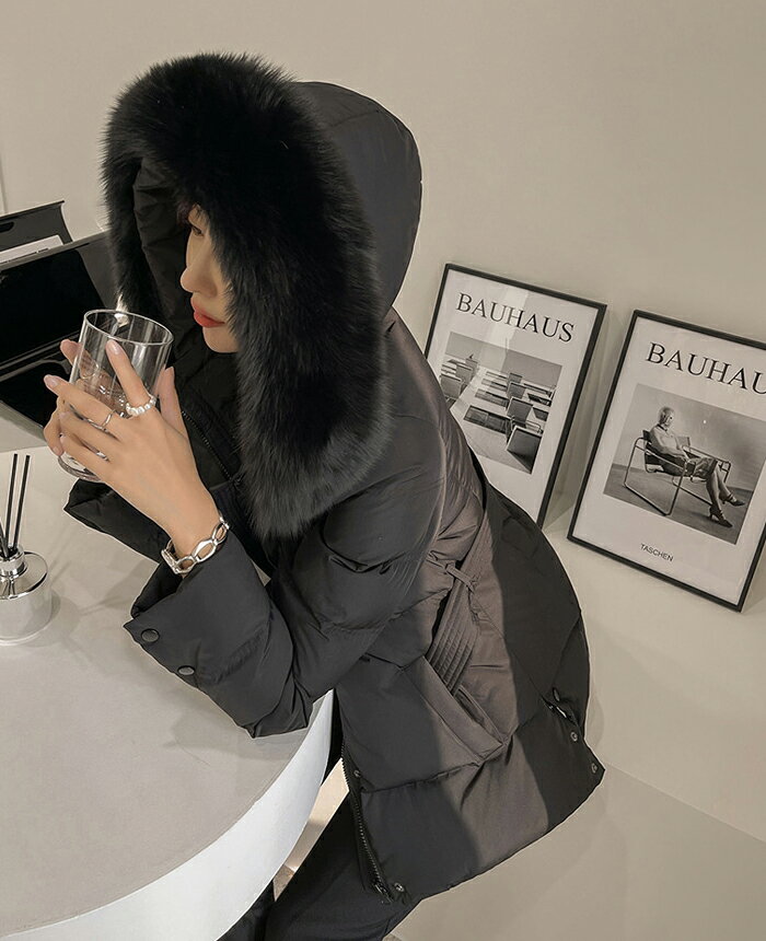 【マラソンSALE】ファーフード&ベルト付ダウンジャケット・p300722 レディース 【jk】ジャケット アウター 長袖 ミドル丈 フード ファー ベルト付き ダウン ダウンコート 単色 無地 シンプル ベーシック 防寒 秋 冬 高級感 韓国ファッション 人気 STYLE mrtot