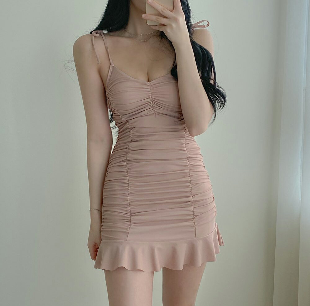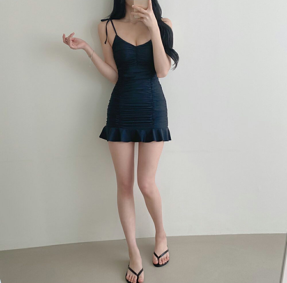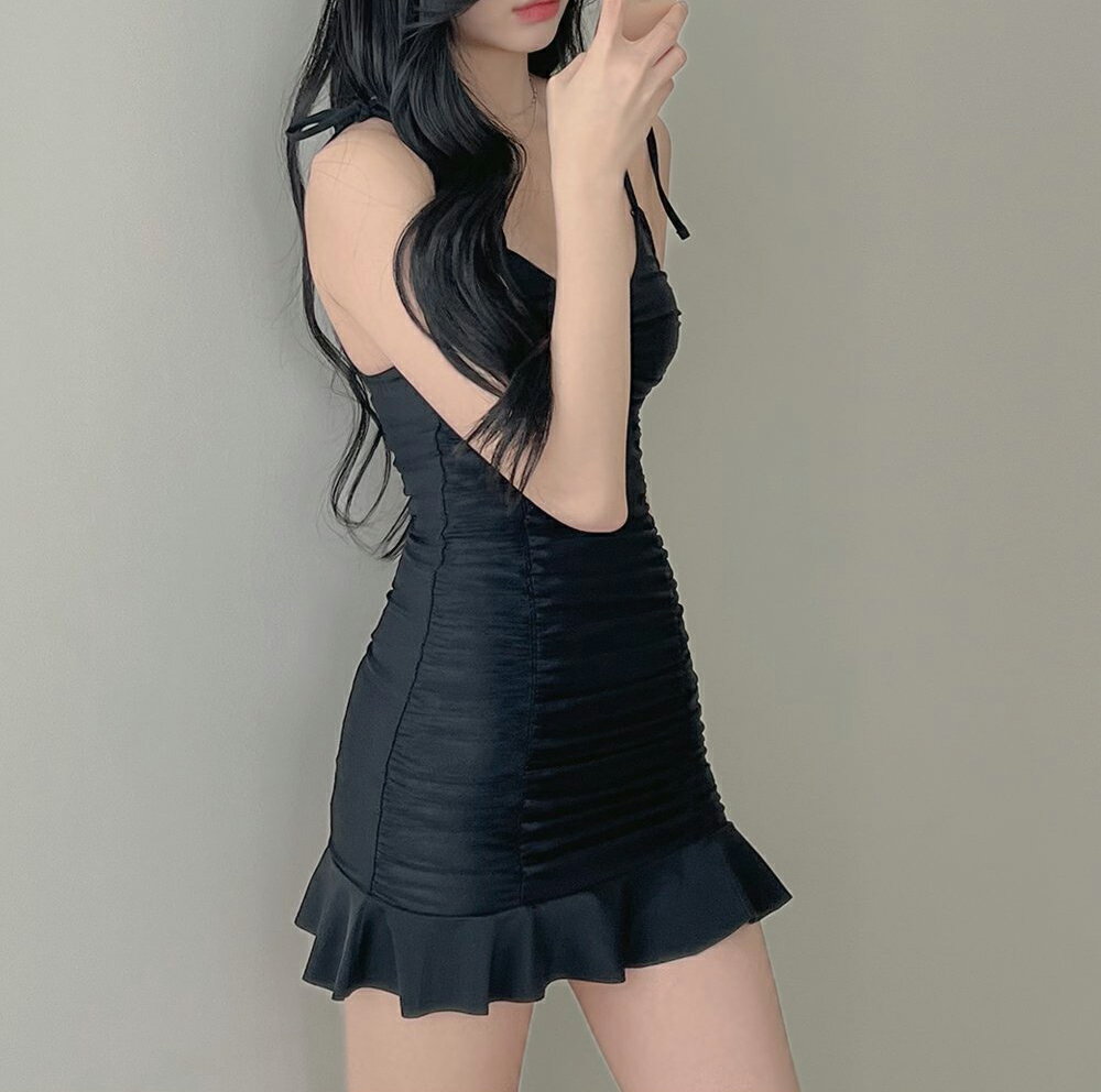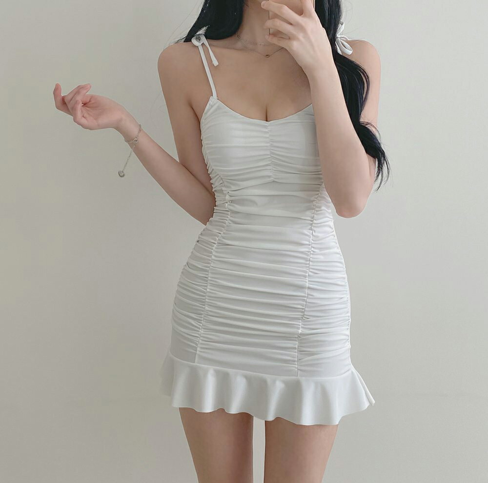 シャーリングワンピース水着・p513715 レディース 【bw】 韓国ファッション 水着 スイムウェア ビーチウェア ワンピース シャーリング キャミワンピ ミニ丈 フレア 個性的 ユニーク 大人 モード 海 ビーチプール 夏 カジュアル STYLE