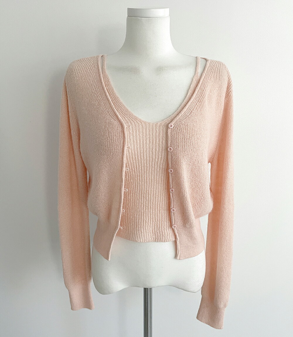 Vネックニットノースリーブ&カーディガンSET・p588061 レディース 【cd】トップス 長袖 カーディガン Vネック ニット ノースリーブ キャミソール アンサンブル レイヤード お出かけ 春 秋 STYLE 韓国ファッション
