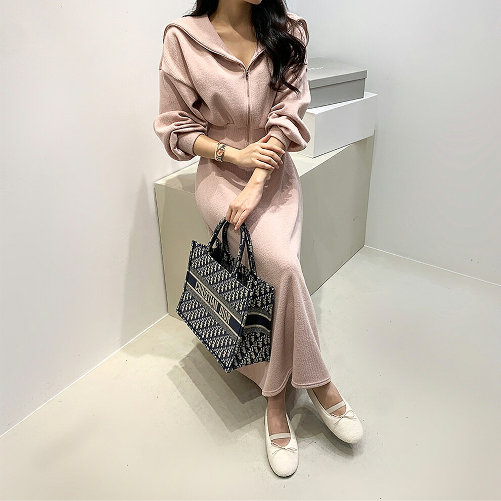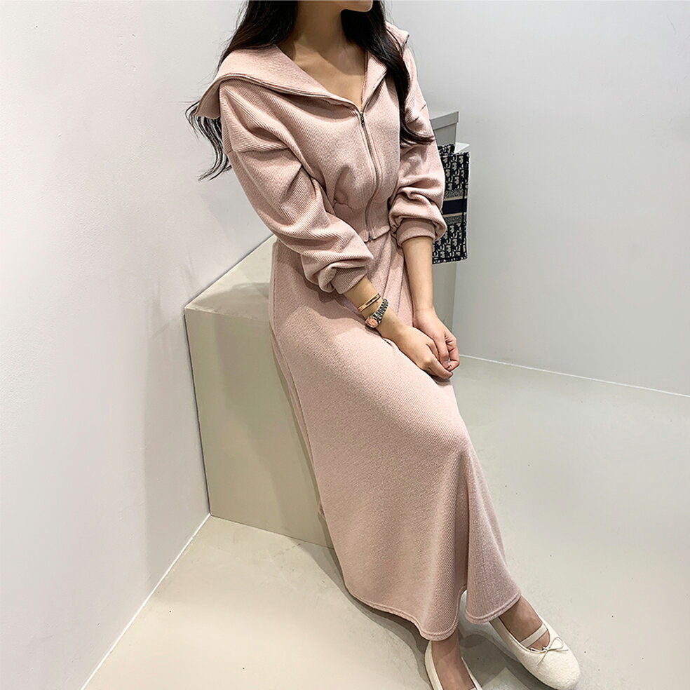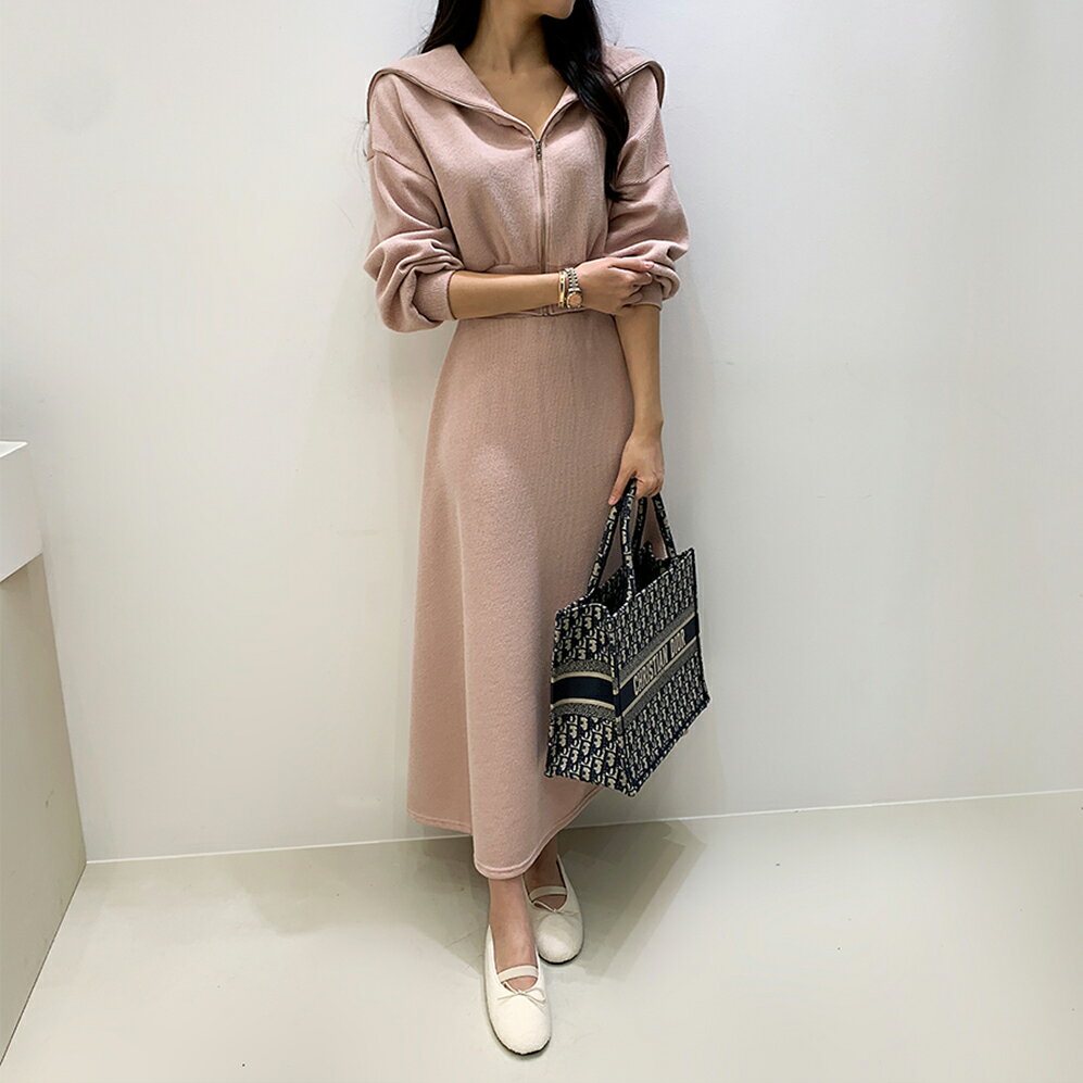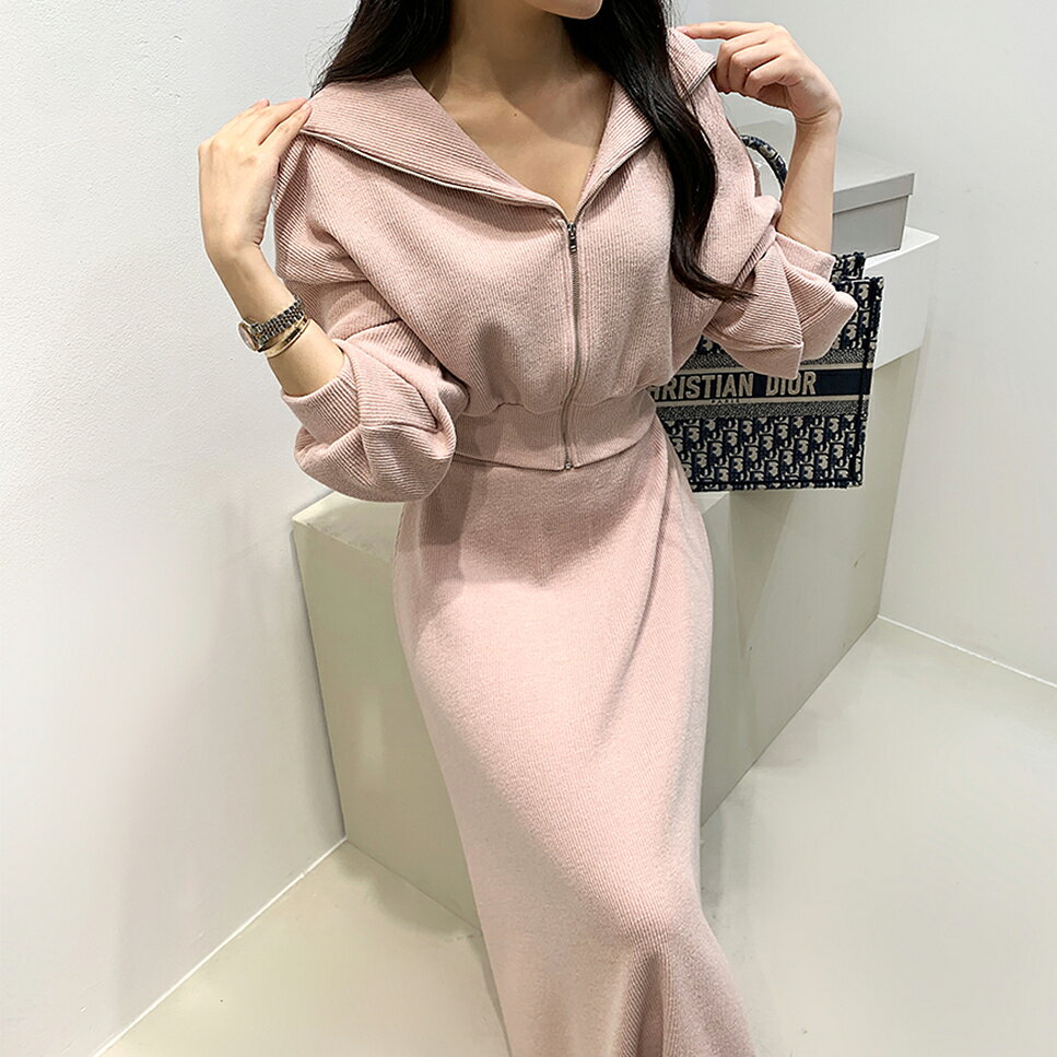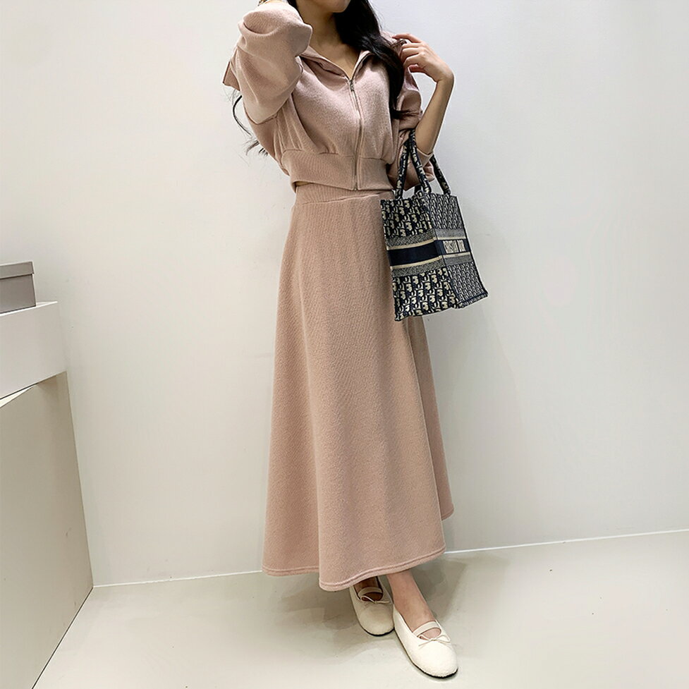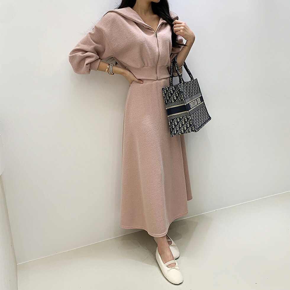 セーラージップスウェット&フレアスカートSET・p630934 レディース 【sk】セットアップ トップス 長袖 スウェット セラーカラー ジップ ボトムス スカート フレア カジュアル フェミニン お出かけ 春 秋 STYLE 韓国ファッション