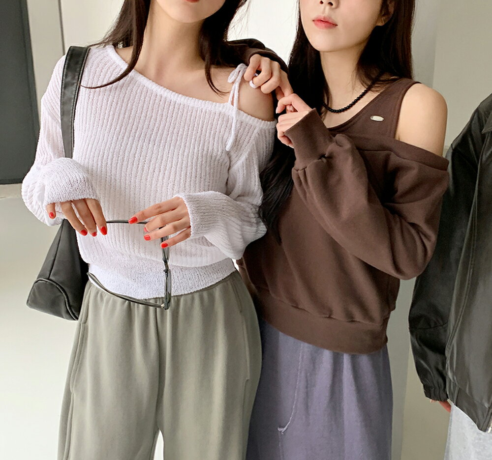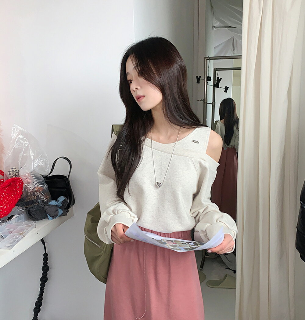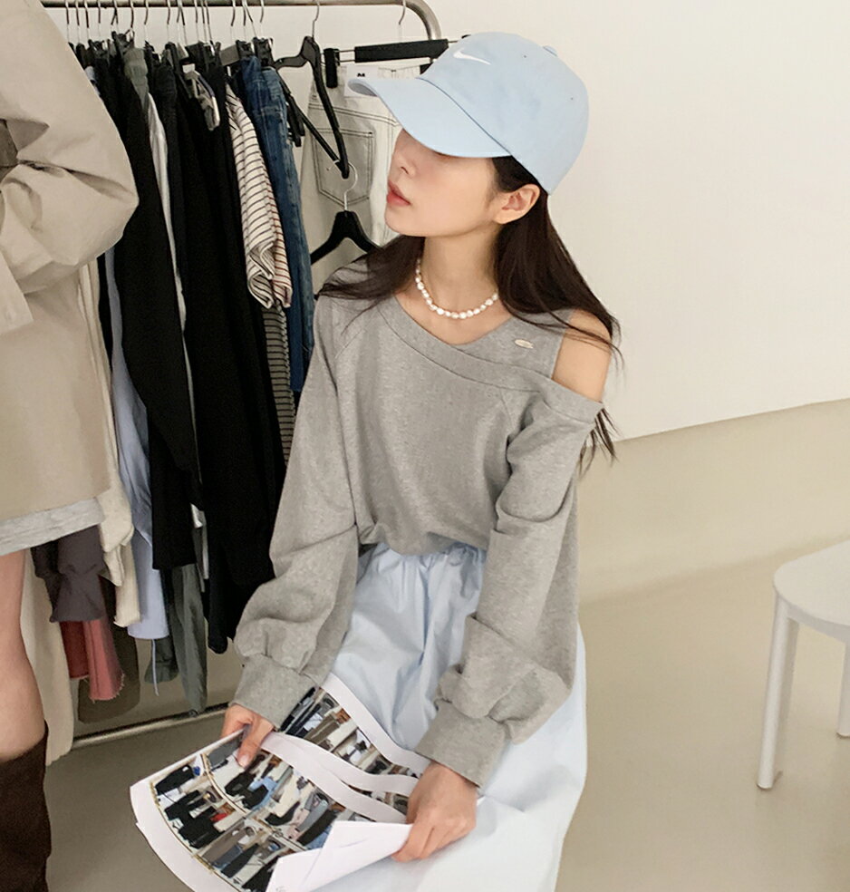 ワンショルダーアシメスウェット・p642613 レディース 【tops】トップス 長袖 オフショル スウェット ワンショルダー アシメ 鎖骨 デコルテ シンプル カジュアル お出かけ 着回し 春 秋 SSGIRL 韓国ファッション