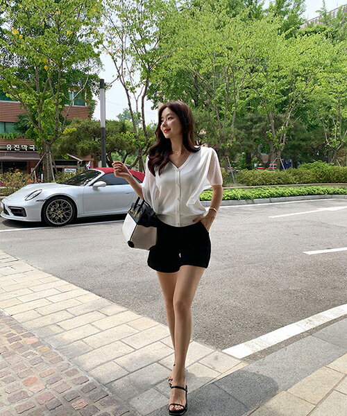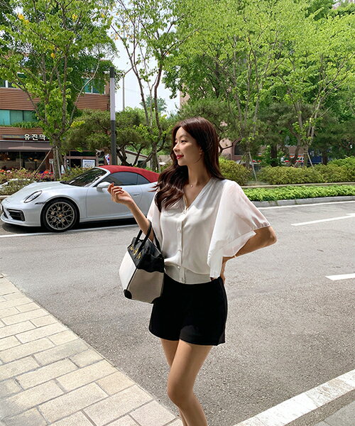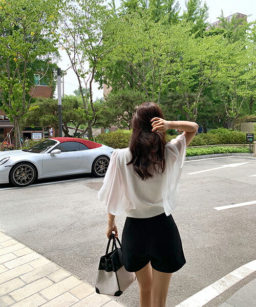 [0719新作]レーディス tops 韓国ファッション トップス Vネック 無地 ボーダー ストライプ ショート丈 クロップド リブ シースルースリーブ スリム 細身 フェミニン オフィス 大人 カジュアル お出かけ 上品 夏 SSMINA
