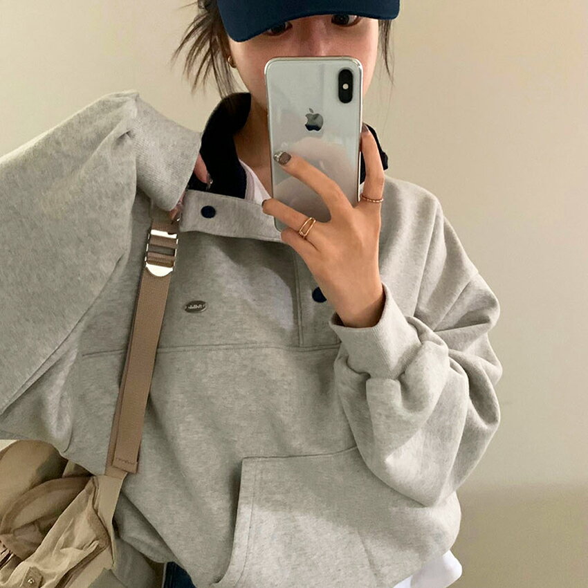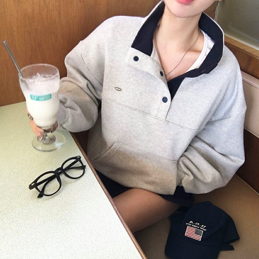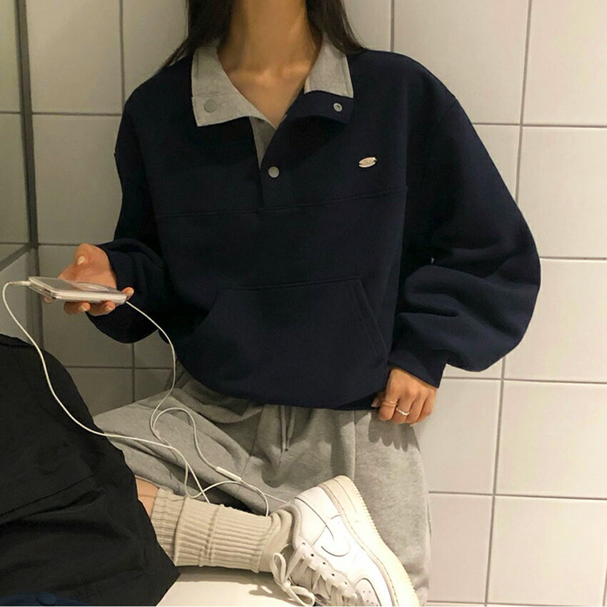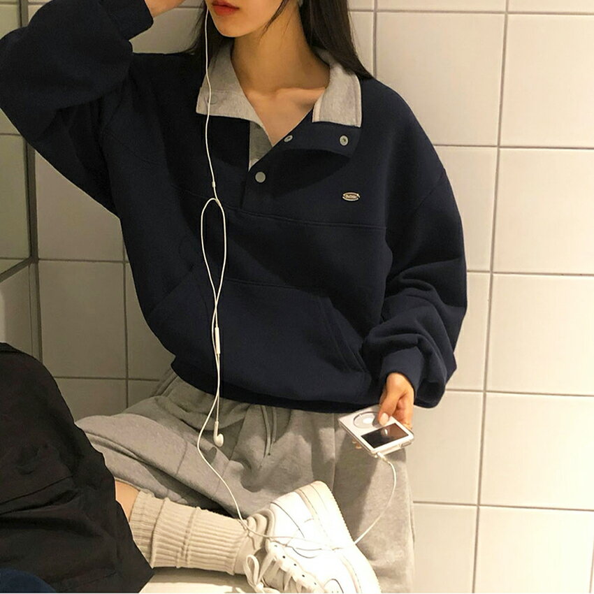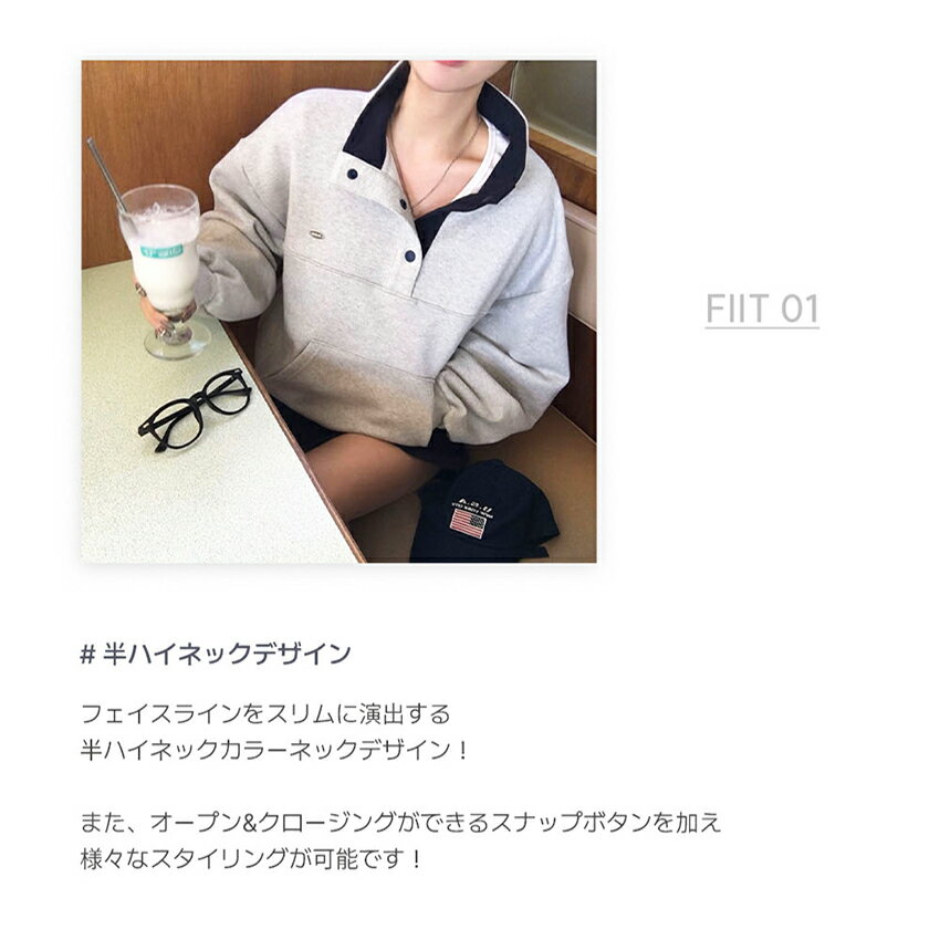 tops レディース 韓国ファッション トップス 長袖 ハーフネック カラーネック リブヘム 綿 コットン 伸びる 無地 シンプル カジュアル 春 秋 SSBEID