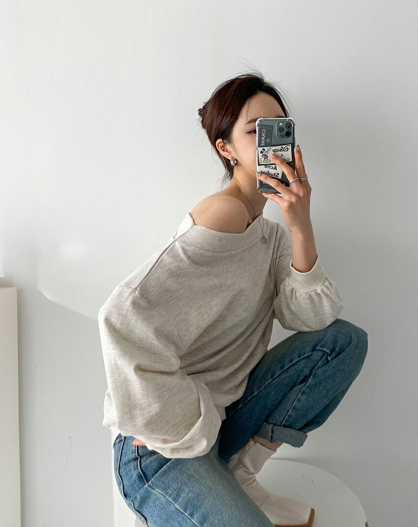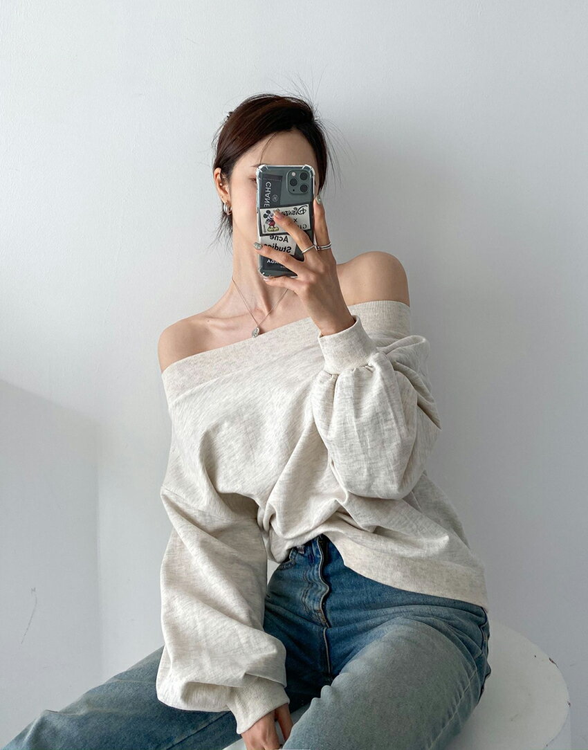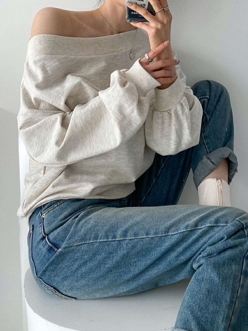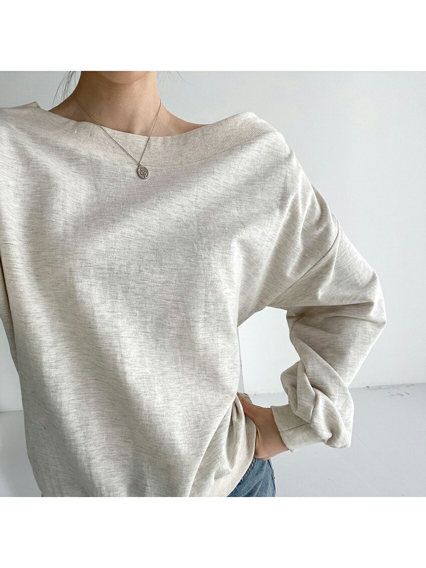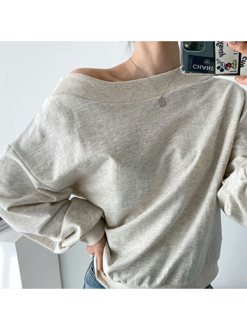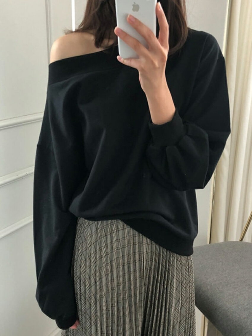 tops レディース 韓国ファッション トップス スウェット 長袖 ボートネック オフショルダー 綿 コットン 伸びる プチプラ セクシー シンプル ガーリー フェミニン カジュアル 秋 冬 bada d62J02