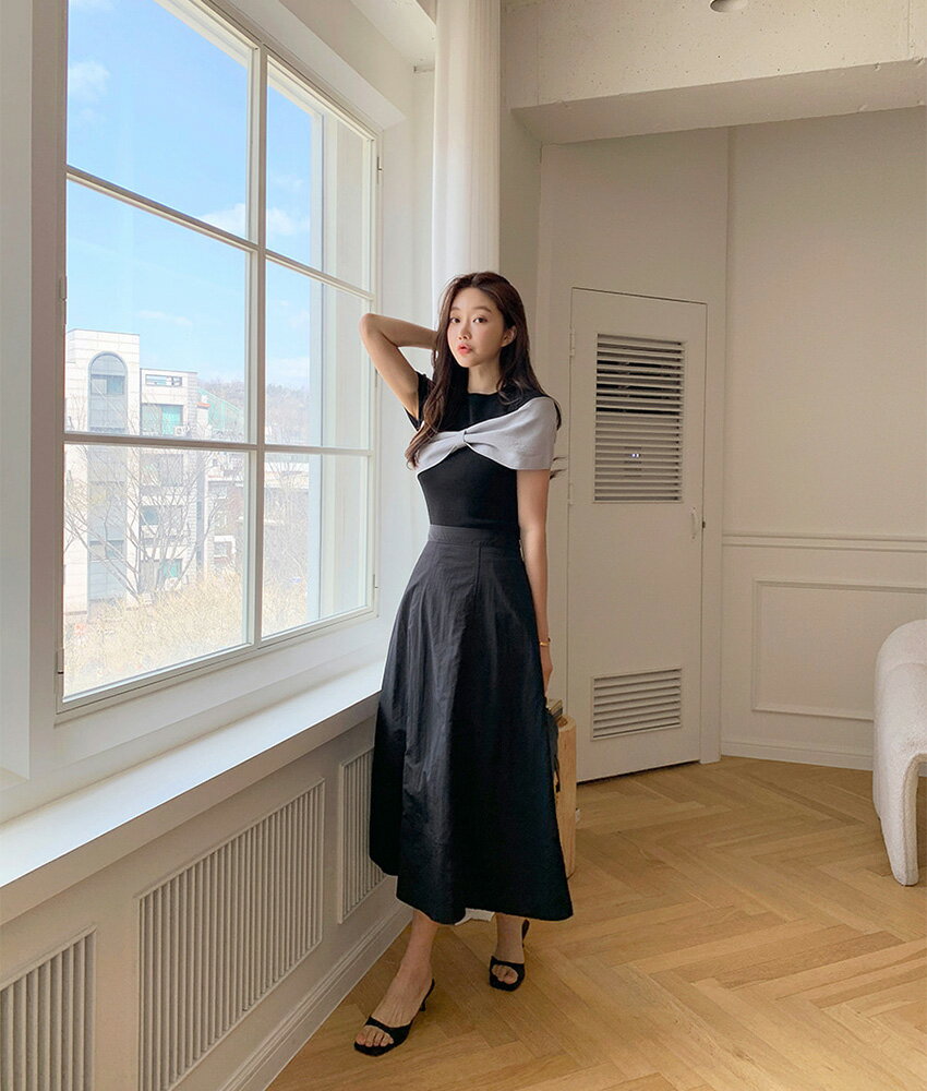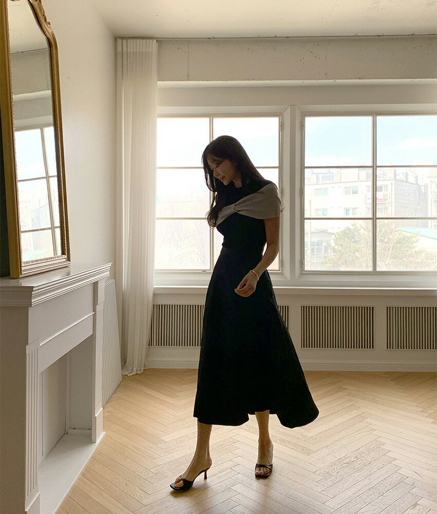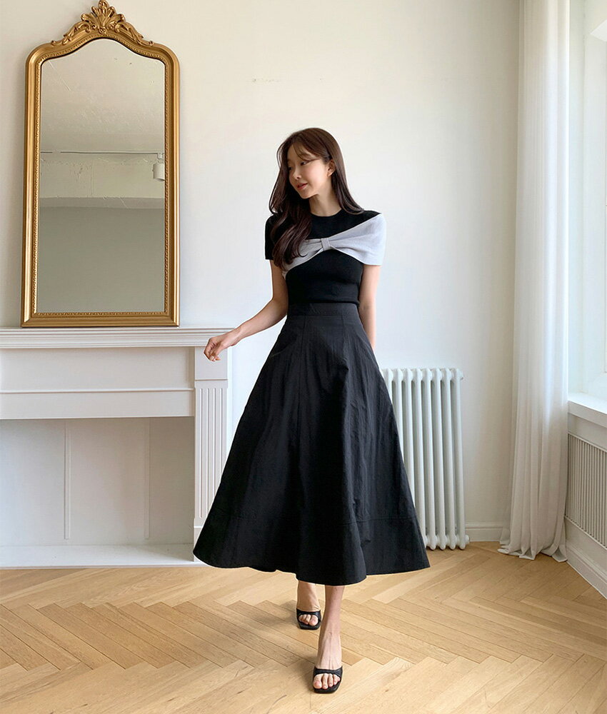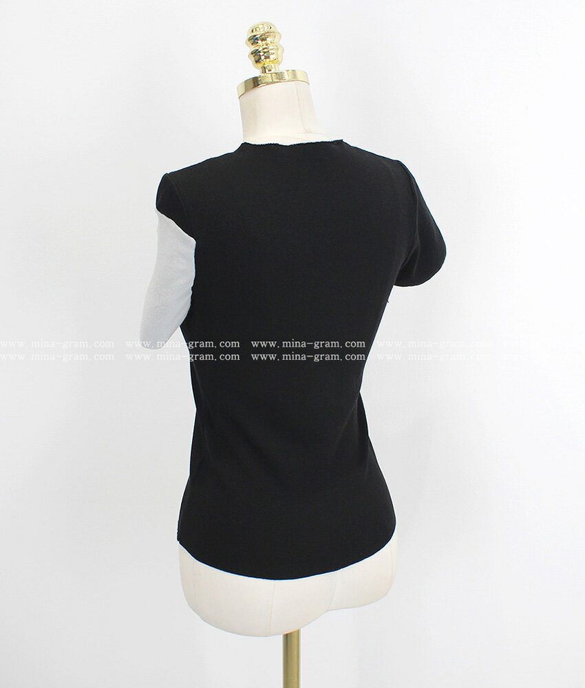 [0417NEW] kn レディース 韓国ファッション トップス ニット 半袖 ラウンドネック リボンポイント クロップド 伸びる スリム シンプル シック 上品 フェミニン カジュアル オケージョン 着回し 春 夏 SSMINA