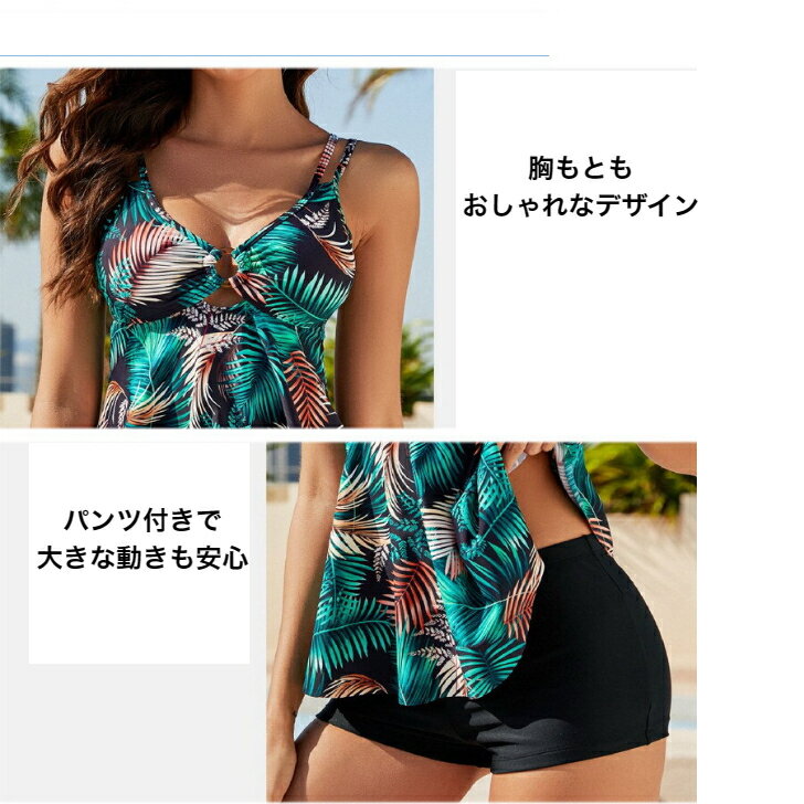 [10/8 00:00~26時間限定15%OFFクーポン]女性用2点セット水着 女の子 水着 レディース 体型カバー ママ水着 ぽっちゃり 大きいサイズ 露出控え 体型カバー水着 40代/30代/20代 50代 タンクトップ 花柄 シンプル