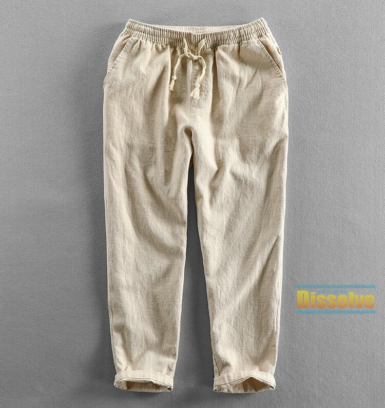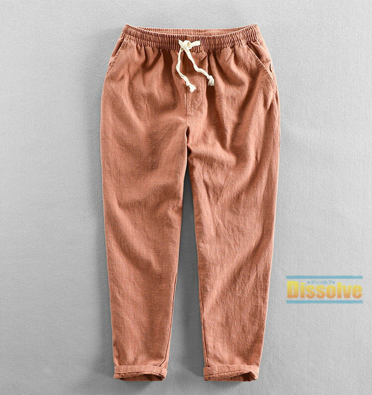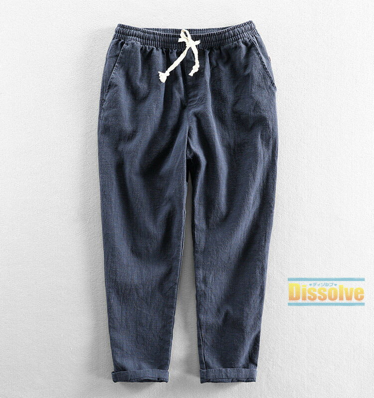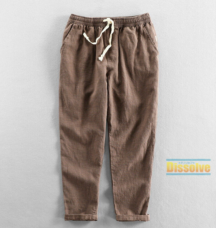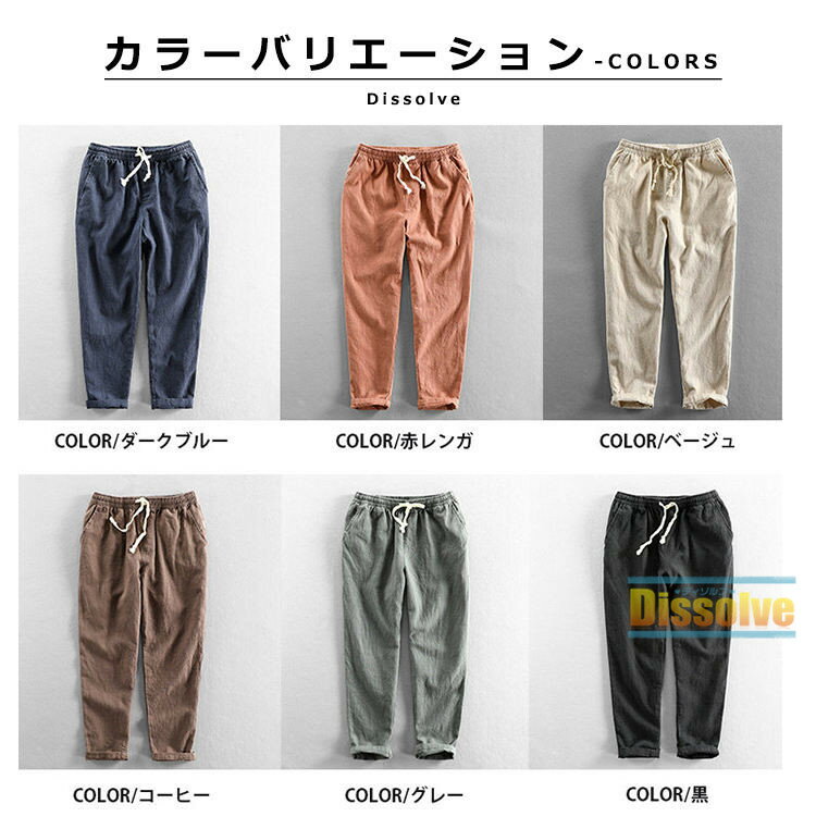 リネンパンツ メンズ 無地パンツ 綿麻パンツ 九分丈 チノパンツ ボトムス テーパードパンツ 麻パンツ お兄系 春コーデ イージーパンツ 春夏 リネン 麻 長ズボン 通勤 通気性 ウエストゴム