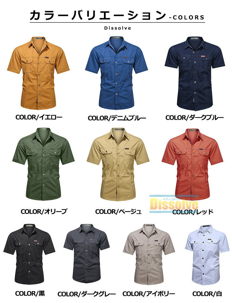 【一部2~4営業日発送】ミリタリーシャツ メンズ 半袖シャツ 綿 半袖 ワークシャツ 無地シャツ カジュアルシャツ トップス 夏服 仕事着 ワークウェア 全10色 アウトドア コットンシャツ 胸ポケット 旅行 釣り 登山 通勤 夏 サマー お兄系 父の日 プレゼント