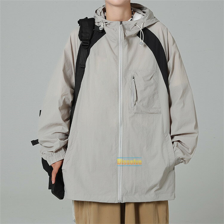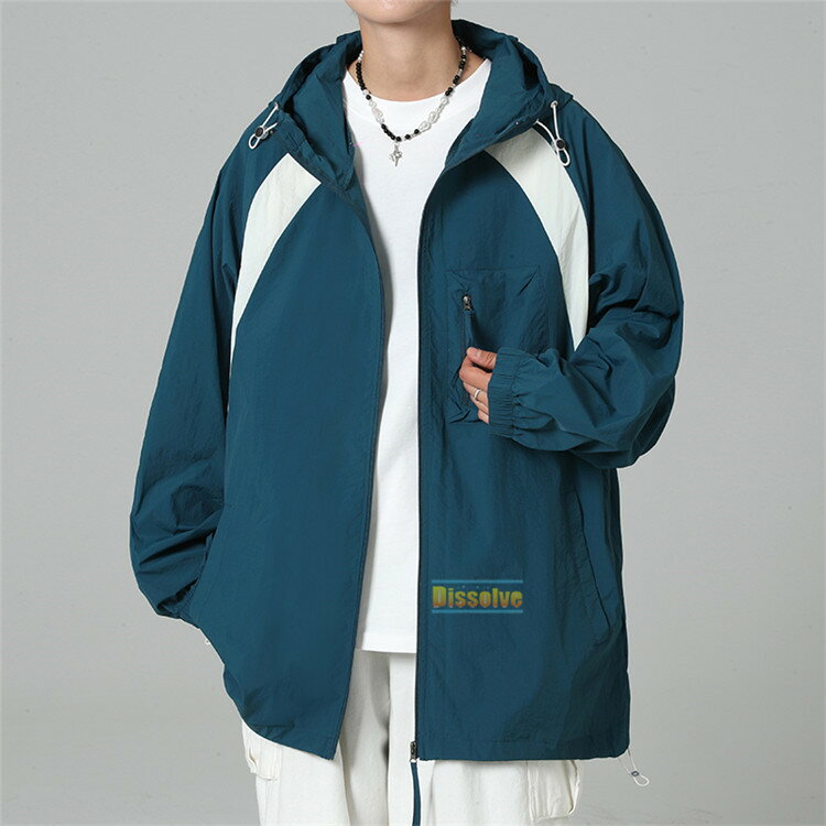 ウィンドブレーカー メンズ ジャケット 薄手 UVパーカー レディース マウンテンパーカー ビッグシルエット 紫外線対策 軽量 はおり ゆったり アウトドア UV対策 冷房対策 ジップアップパーカー フード付き 胸ポケット 男女兼用 春 夏