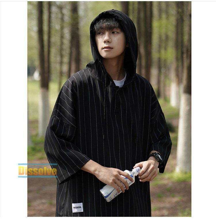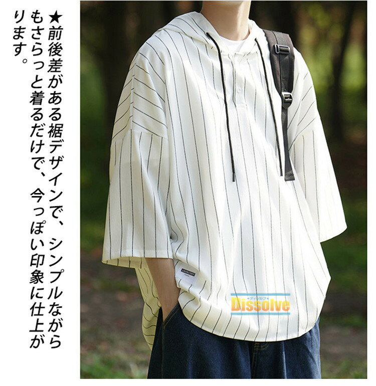 \2枚で送料無料/【即納】夏用パーカー 半袖パーカー メンズ 夏用 ビックシルエットパーカー 接触冷感 半袖 パーカー 薄手 メンズ ゆったり ストライプ柄 薄手パーカー 涼しい トップス 夏服 カッコイイ サマーパーカー 黒 白 大きいサイズ UVカット