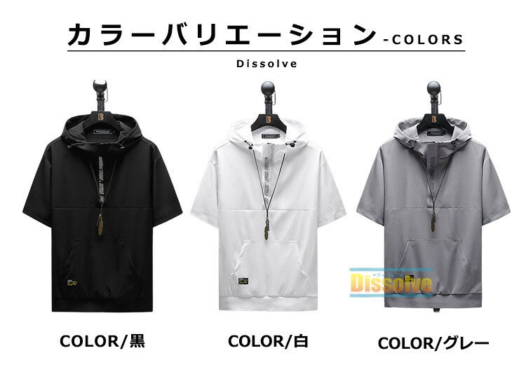 \限定セール!2680円→2550円/【即納】夏用パーカー メンズ 無地 半袖 パーカー ハーフジップ 薄手パーカー プルオーバー 夏パーカー 細身 トップス 涼しい パーカ 夏服 20代 30代 40代 フード付き シンプル サマーパーカー カジュアル キレイめ