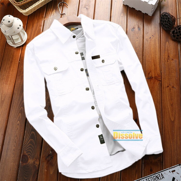 \今だけ!2890円/ミリタリーシャツ メンズ 長袖シャツ 綿 ワークシャツ 無地シャツ カジュアルシャツ 長袖 トップス 秋服 仕事着 全8色 アウトドア コットンシャツ 胸ポケット 旅行 釣り 登山 通勤 春 お兄系 ワーク メンズシャツ カッコイイ