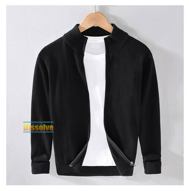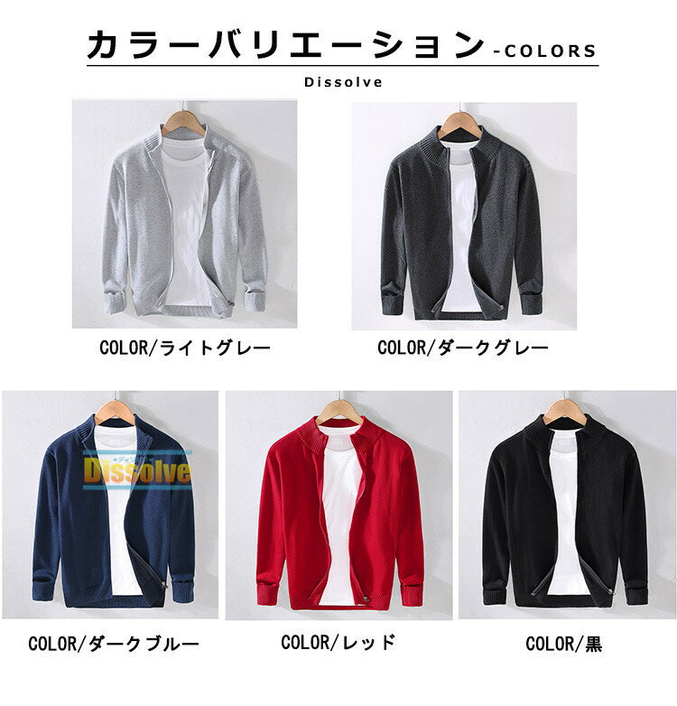 ニットジャケット メンズ 無地 ニット カーディガン 長袖 綿 ジップアップ モックネック 細身 ニットカーディガン 通勤 通学 スポーツ 春 秋 冬 あったか