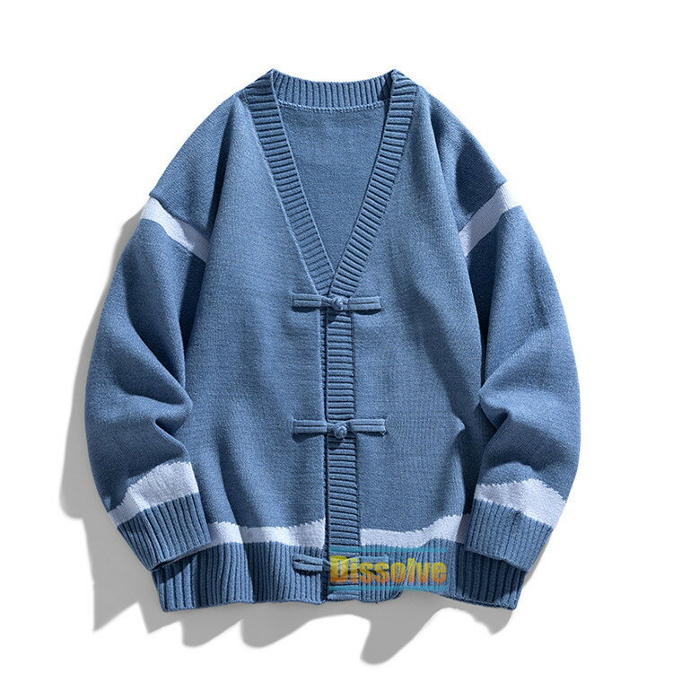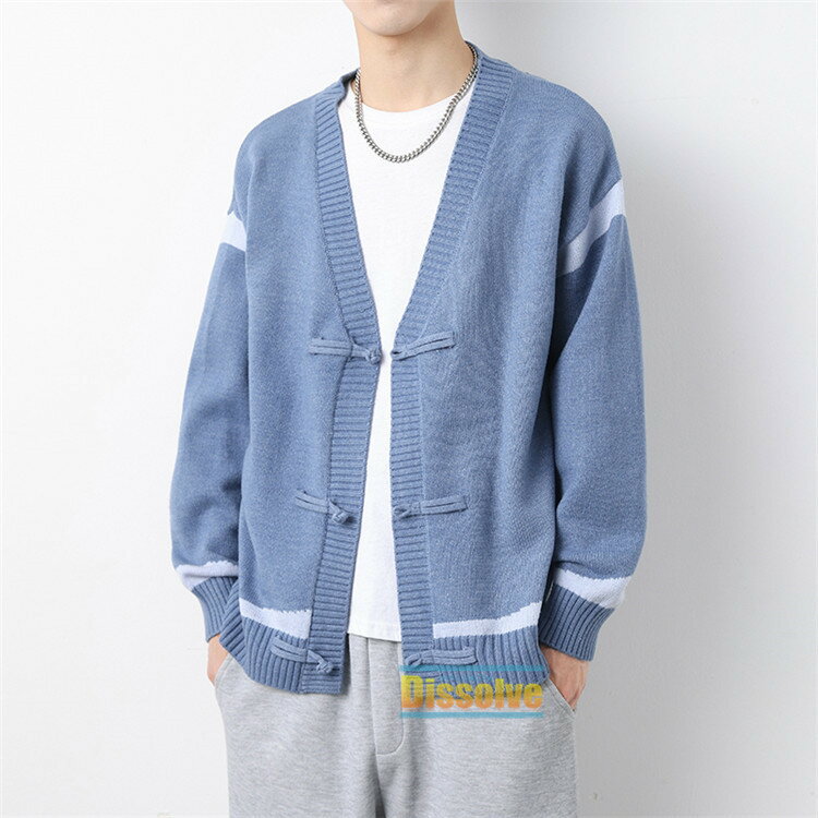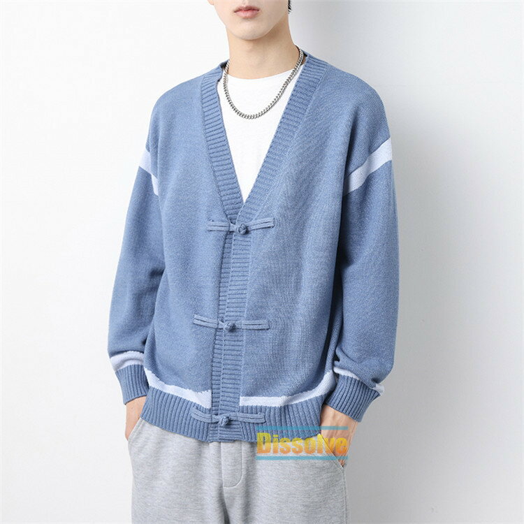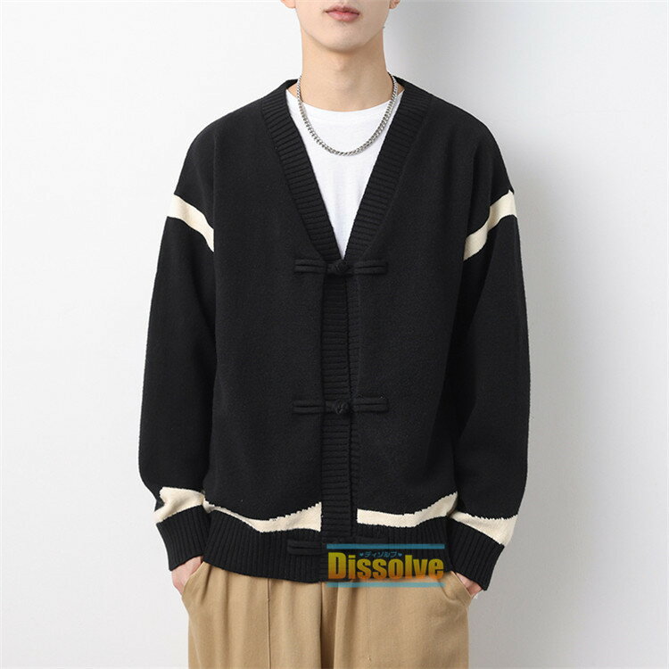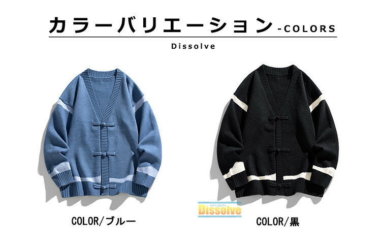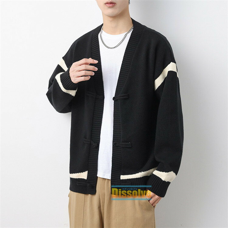 カーディガン メンズ Vネック 長袖 ニットカーディガン おしゃれ チャイナボタン ニットジャケット ライトアウター ブラック ブルー 通勤 通学 キレイめ チャイナ風