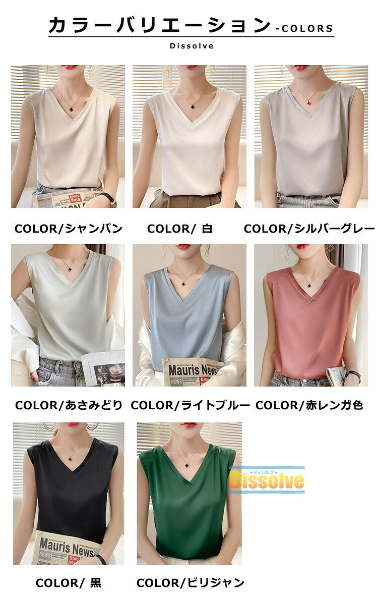 レディース タンクトップ シルク Vネック キャミソール 肌着 インナー 無地 トップス ノースリーブ シャツ カットソー シルクサテン 絹 ブラウス 袖なし 大きいサイズ ルームウェア 上品 速乾 涼しい 快適 夏 OL オフィス 母の日