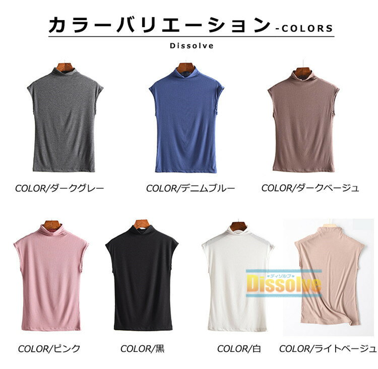 \2枚で送料無料/ノースリーブ Tシャツ レディース 無地 モックネック UVカット 薄手 タンクトップ ハイネック 透け感 インナー トップス シンプル ネックガード ストレッチ 袖なしTシャツ カジュアル オフィス 通勤 ママコーデ 母の日