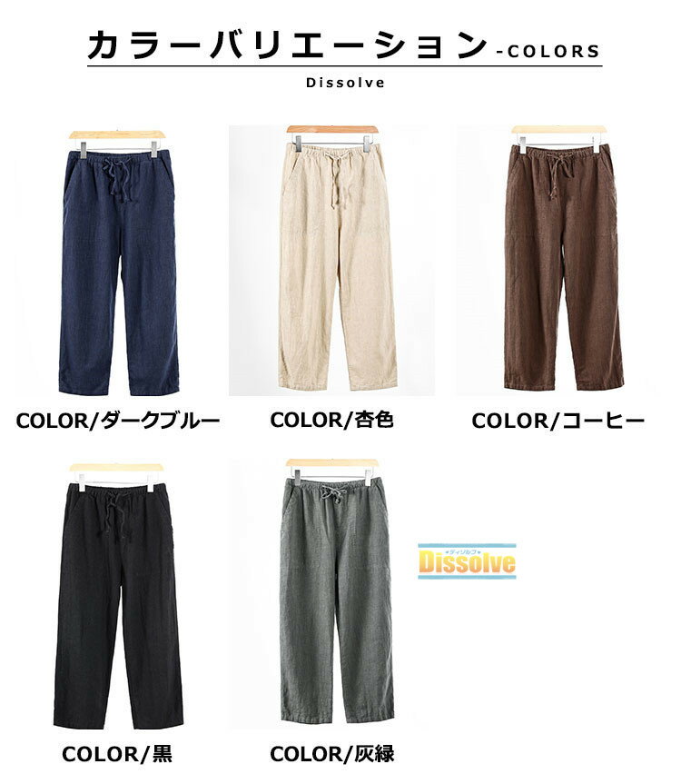 麻 パンツ メンズ 無地 綿麻パンツ リネンパンツ 薄手 ロングパンツ ストレートパンツ ボトムス 涼しいパンツ 長ズボン コットン リネン 通気性 カジュアル イージーパンツ 夏 シンプル 爽快