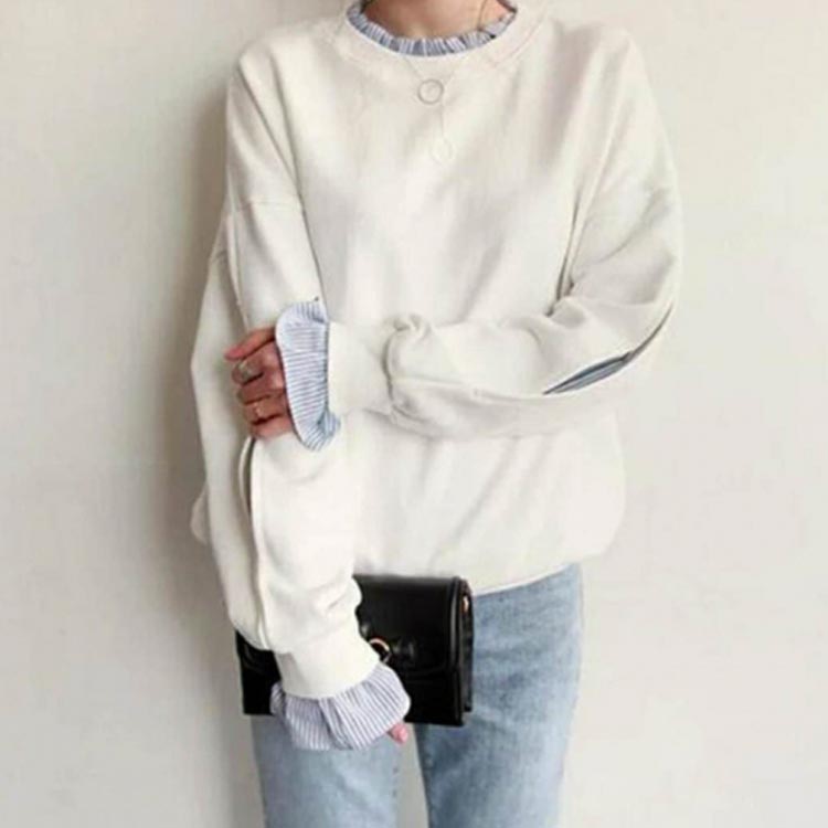 トップス レディース 重ね着風 長袖 フリル スウェット トレーナー カットソー ドロップショルダー カジュアル 可愛い ストライプ 着痩せ 普段着 春秋 ゆったり お洒落 キレイめ 送料無料
