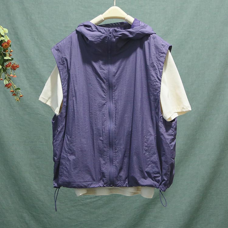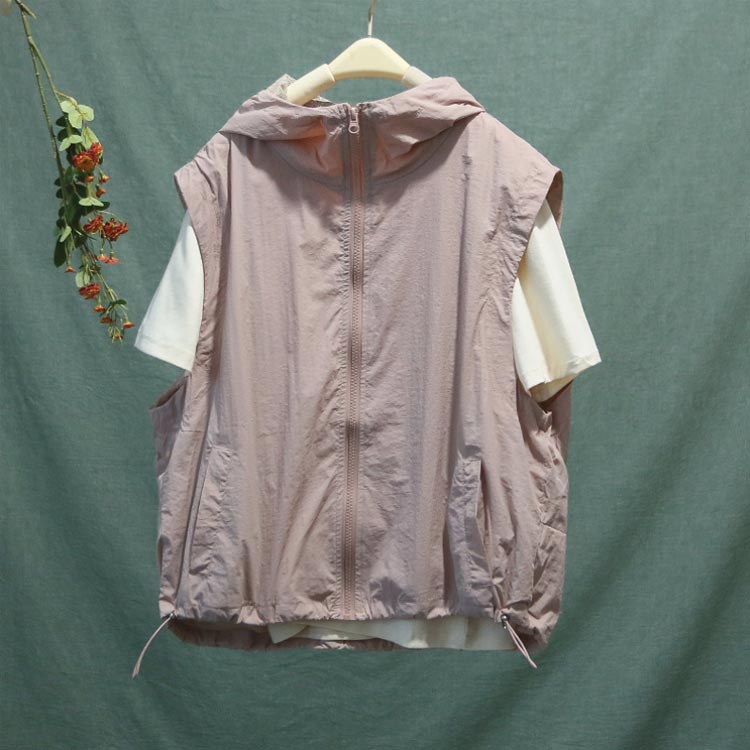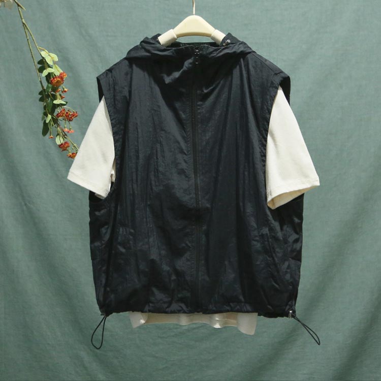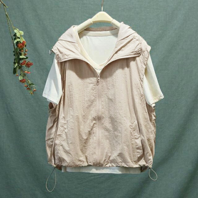 ベスト フード付き レディース トップス パーカー アウター ノースリーブ 重ね着 レイヤード ジャケット 薄手 前開き 無地 羽織り ライトアウター 春夏 着回し 涼しい UVカット スポーツ ゆったり 送料無料