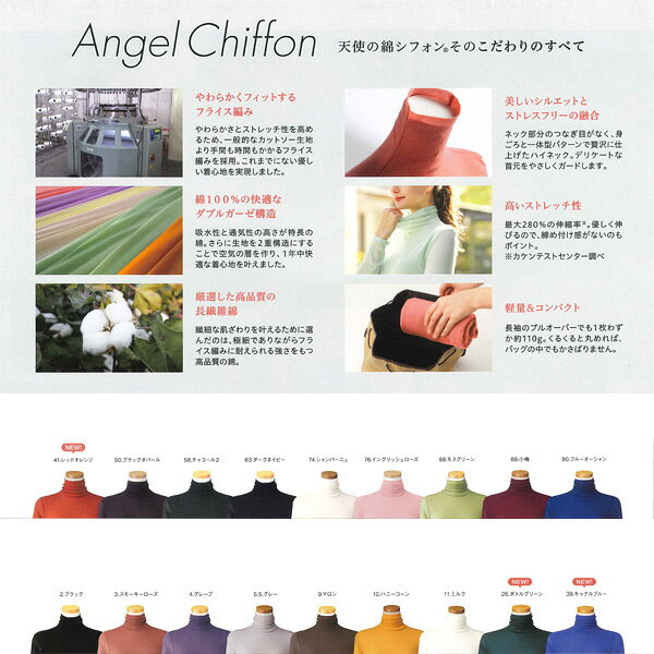 【送料無料】【CHIFFON】天使の綿シフォンハイネック 長袖(二重袖)【S/M/L/LL】【コットン】【ストレッチ】