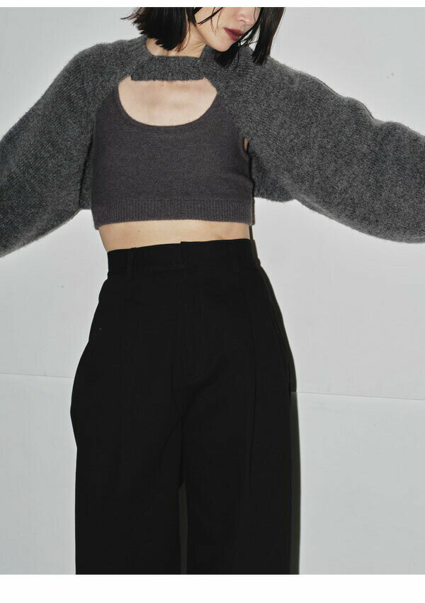 【即納】 トゥデイフル TODAYFUL 2024prefall トップス Melange Sleeve Knit メランジスリーブニット ショート丈 長袖 2024aw 12420504