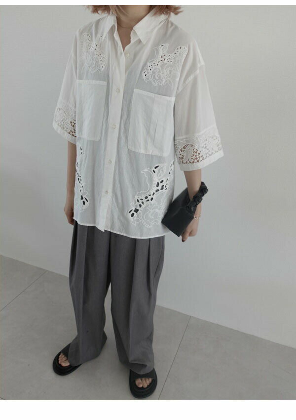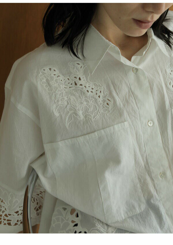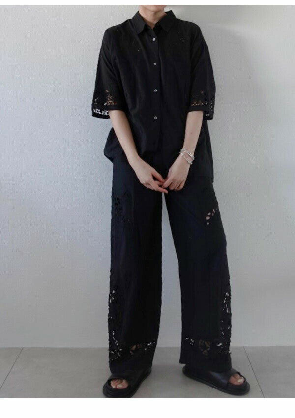 anuke 2024SpringSummer アンヌーク トップス Cutwork Lace Shirts 9月上旬~下旬予約 カットワークレースシャツ ミドル丈 半袖 五分丈 2024ss 62410703 62410402