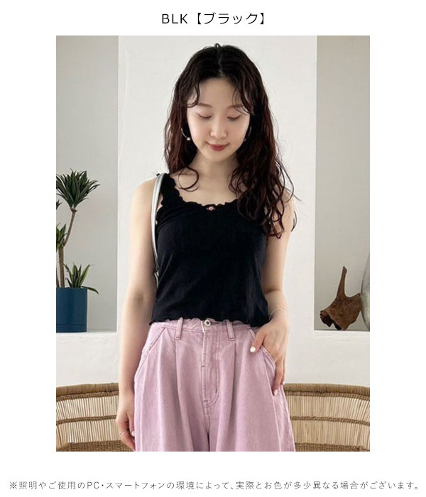 【SALE50%OFF】 【即納】 リリーブラウン LILY BROWN トップス 24秋冬 コットンフリルタンク ノースリーブ タンクトップ コットン ミドル丈 llct244502