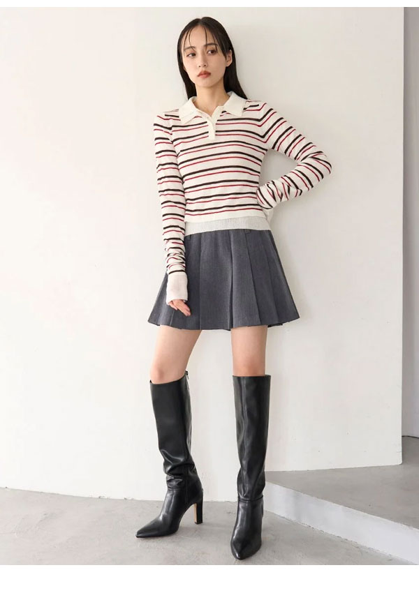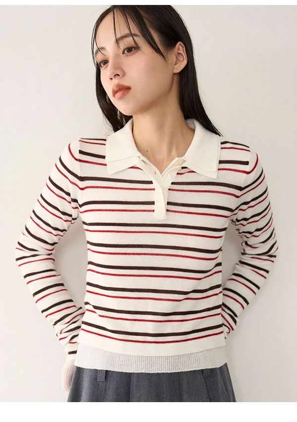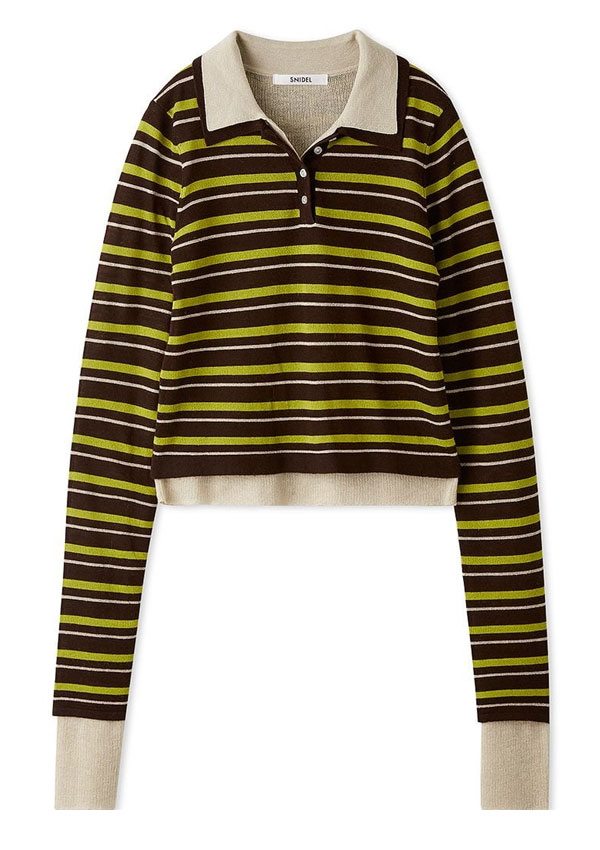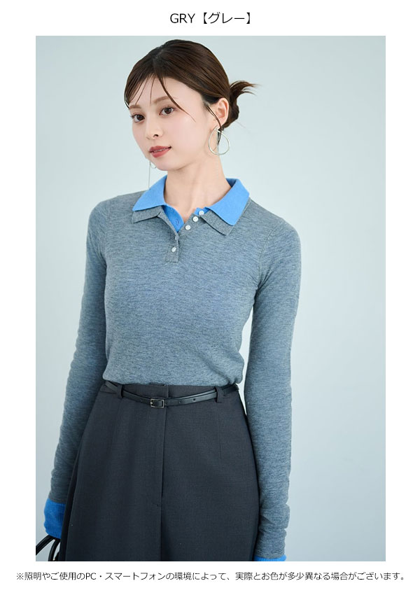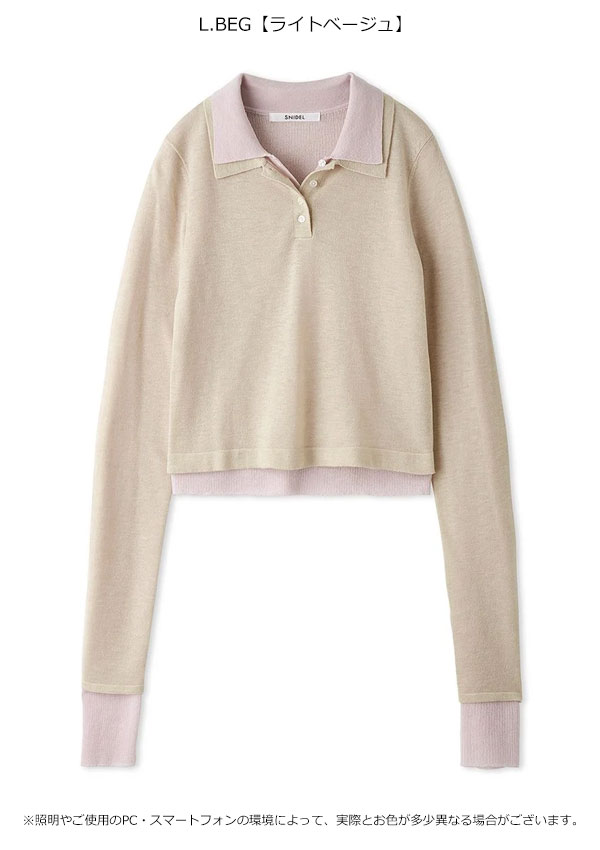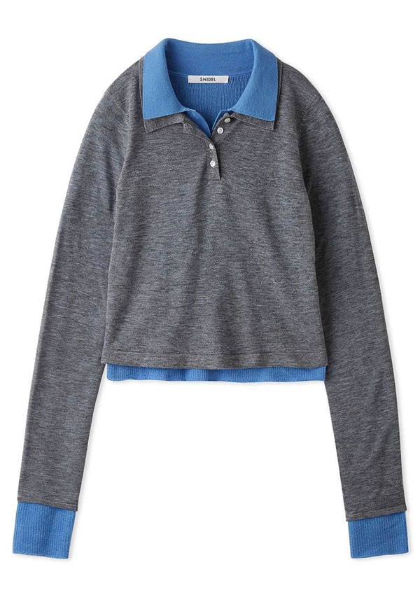 【SALE10%OFF】 スナイデル SNIDEL トップス 24秋冬 Sustainableレイヤードポロニットプルオーバー 10月下旬~11月中旬予約 長袖 ショート丈 swnt245096