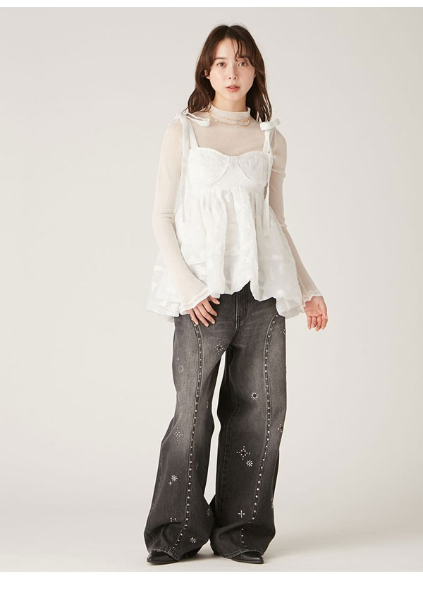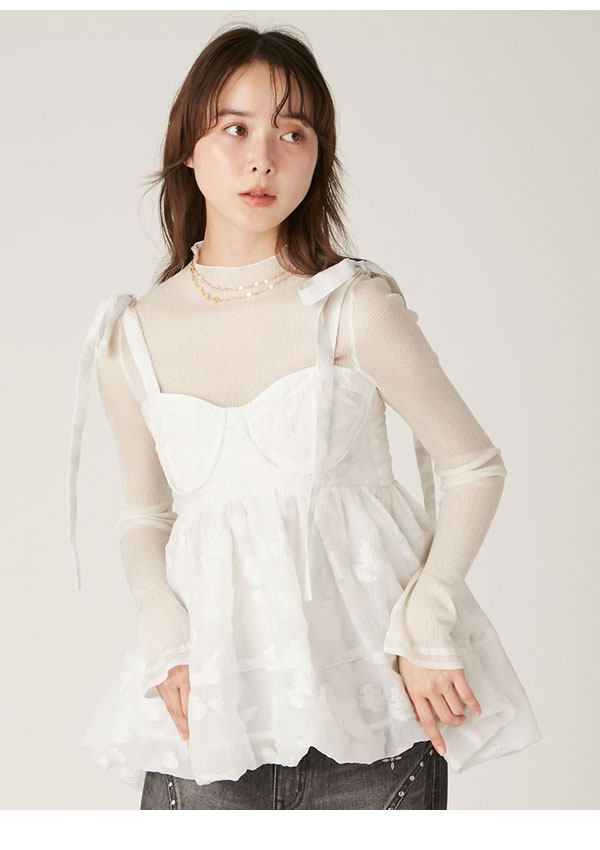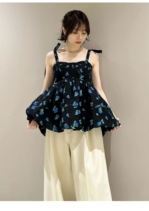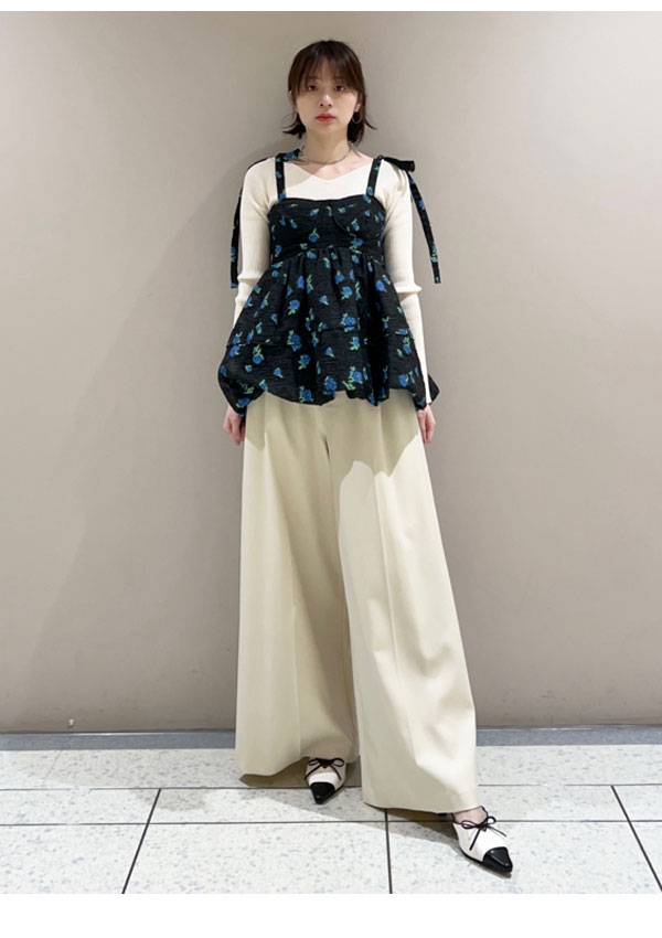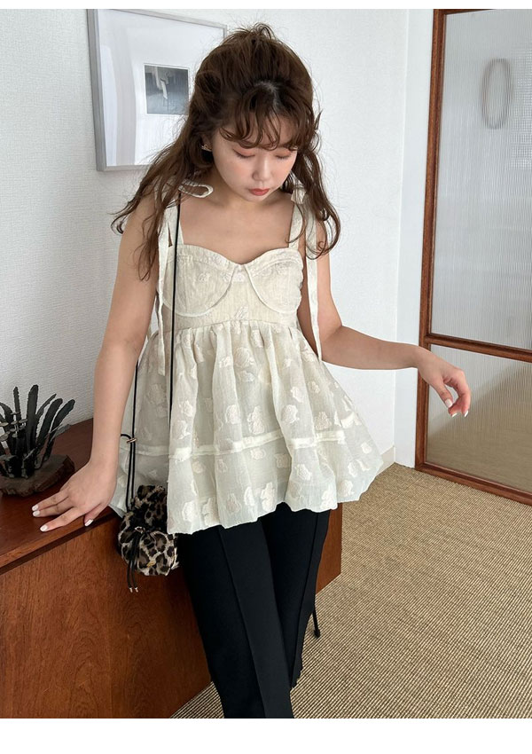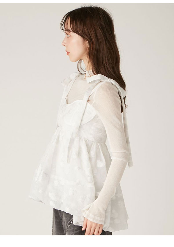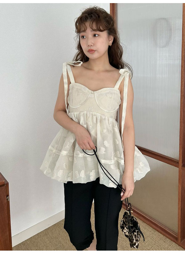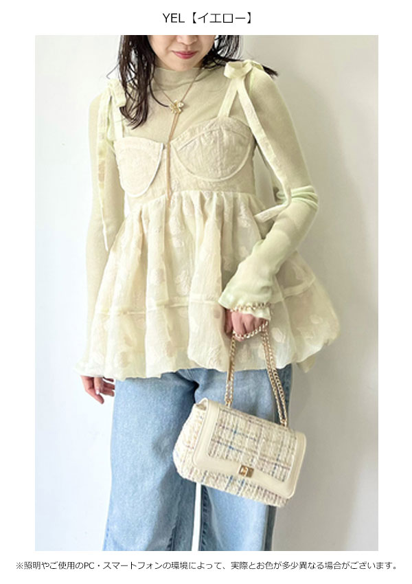 【新作10%OFF】【即納】 リリーブラウン LILY BROWN トップス 25春夏 シアージャガードペプラムトップス キャミソール ミドル丈 ペプラム リボン lwft251074
