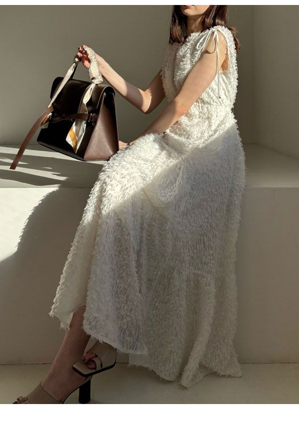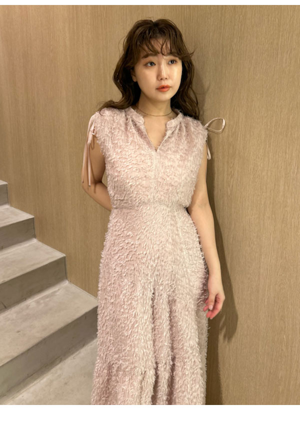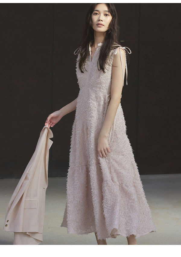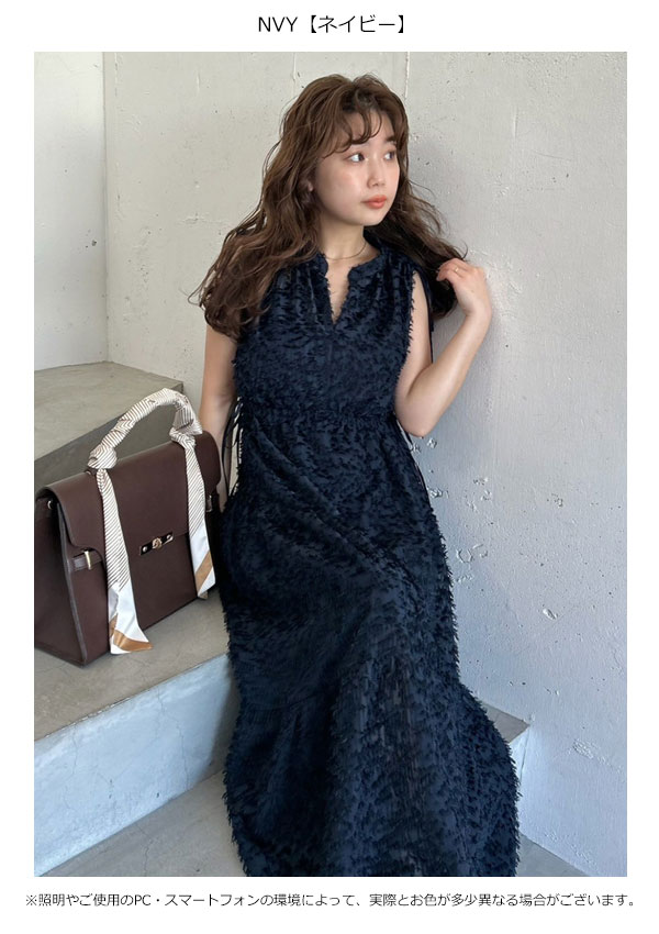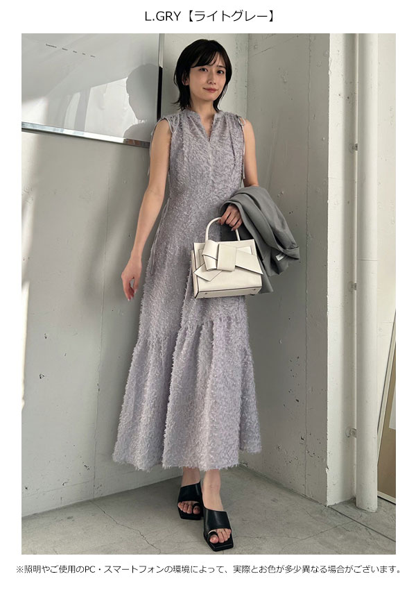 【新作10%OFF】【即納】 フレイアイディー FRAY I.D ワンピース 25春夏 フリンジジャガードティアードワンピース ドレス ロング丈 ノースリーブ fwfo252011
